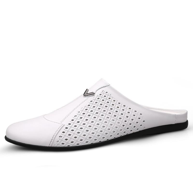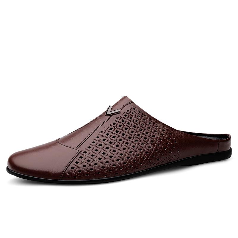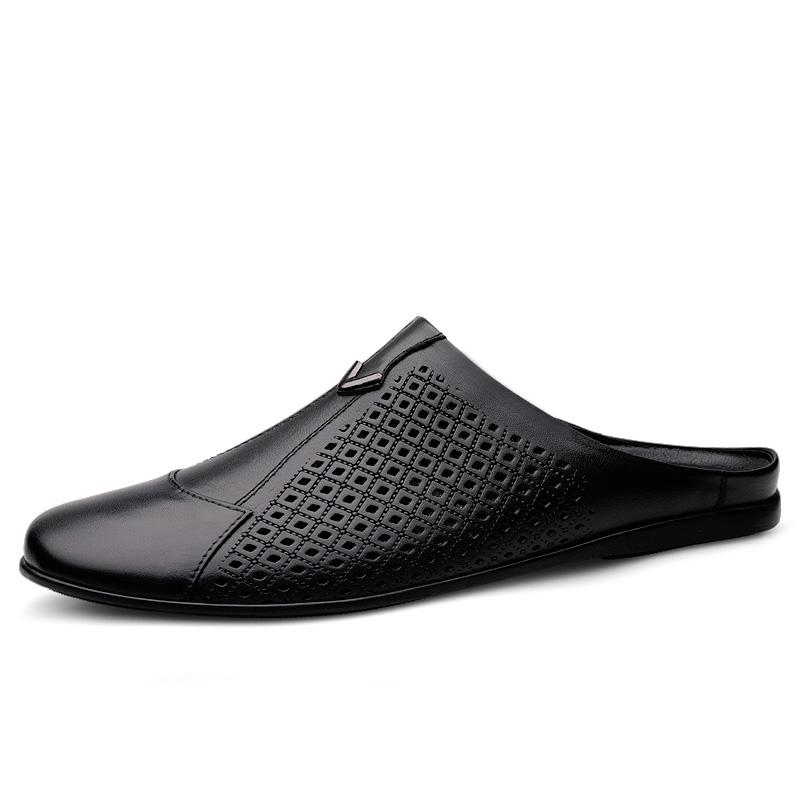 Итальянские мужские тапочки из натуральной кожи Muller Shoes Мужские мокасины для отдыха на открытом воздухе Нескользящие черные повседневные полутапочки Мужские модные туфли для мужчин