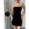 Женское весенне-летнее сексуальное бархатное элегантное и модное платье без бретелек для похудения с жемчугом