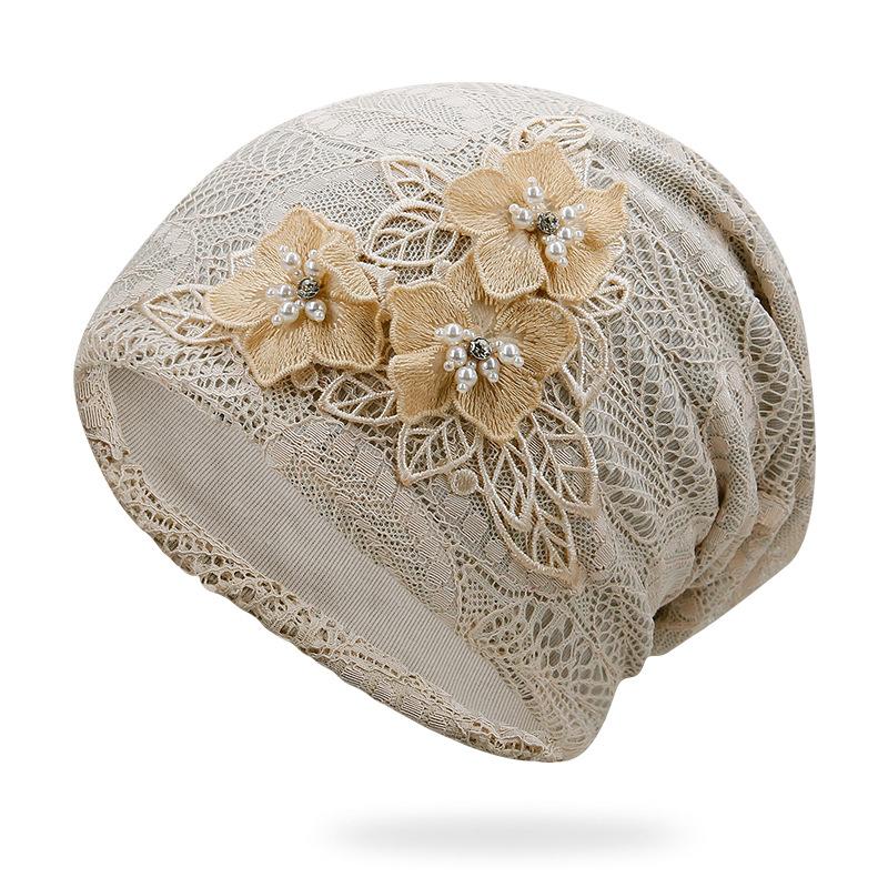 Тонкий стильный пуловер-шляпа для женщин, модная кружевная цветочная дышащая шапка-платок, модная повседневная шапка-платок