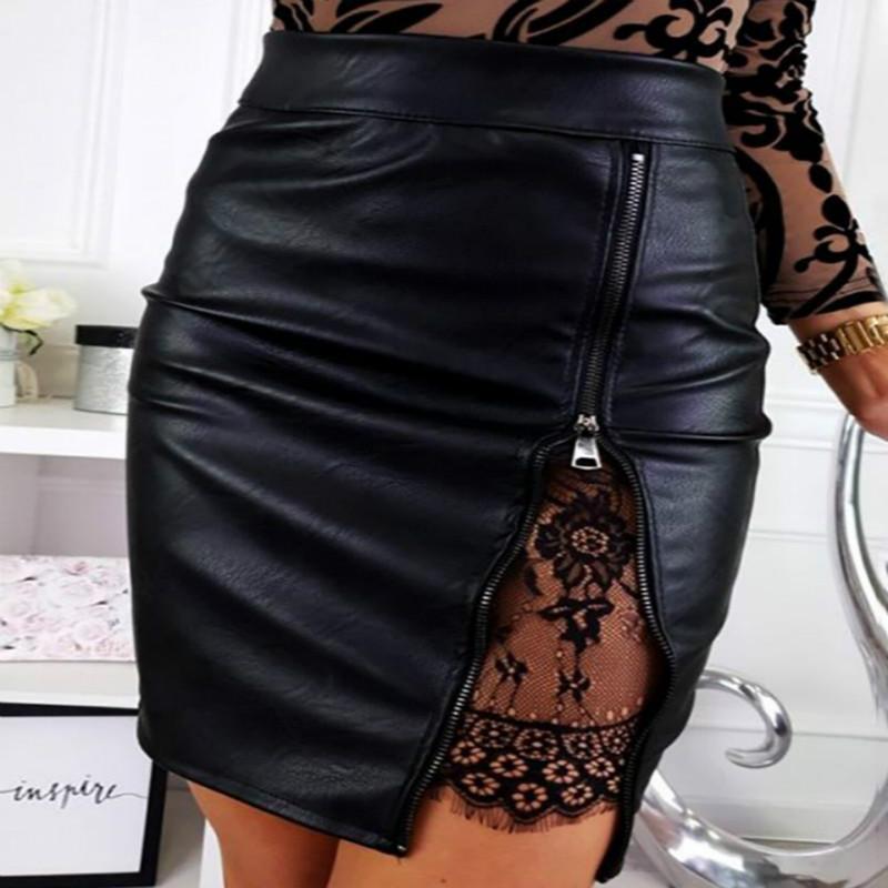 Женская тонкая сексуальная юбка из искусственной кожи с кружевной застежкой-молнией