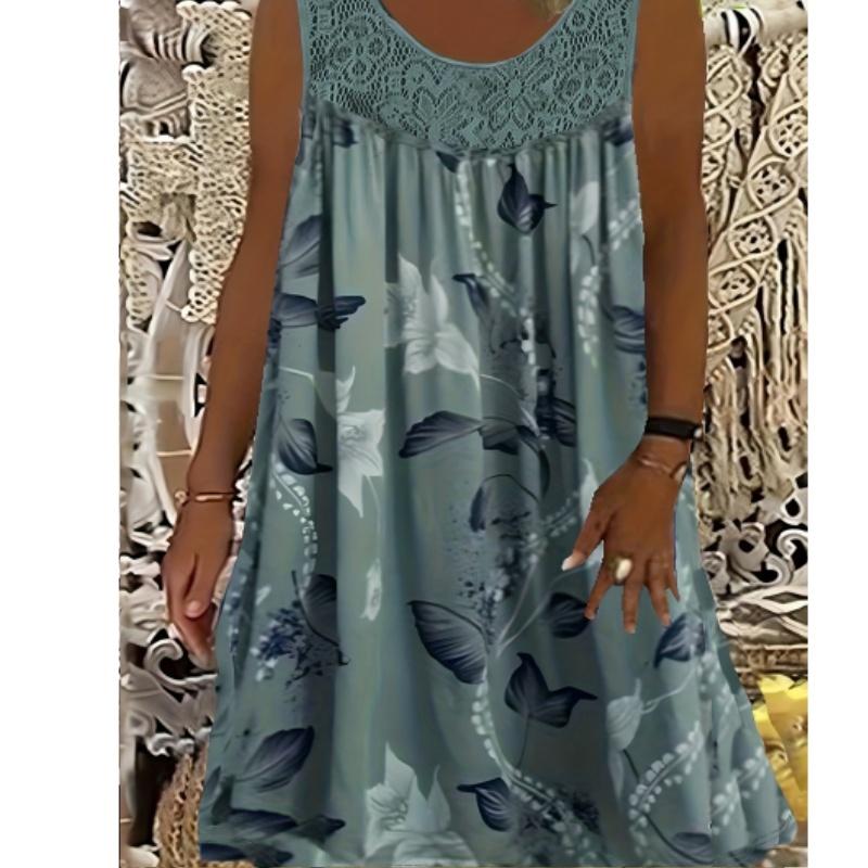 Кружевное лоскутное принтованное платье без рукавов свободного покроя летнее платье повседневная свободная ночная рубашка женская пижама