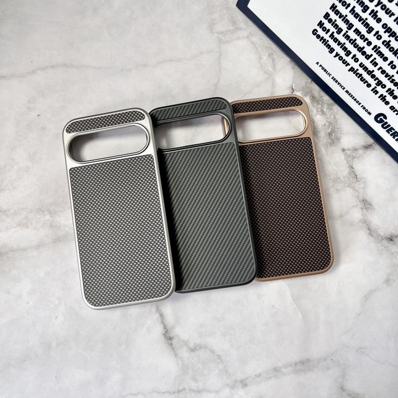 Роскошный чехол с текстурой из углеродного волокна для Google Pixel 9 Pro XL 9 9 Pro, жесткий противоударный чехол из ПК с мягким краем и однотонным цветным чехлом для телефона