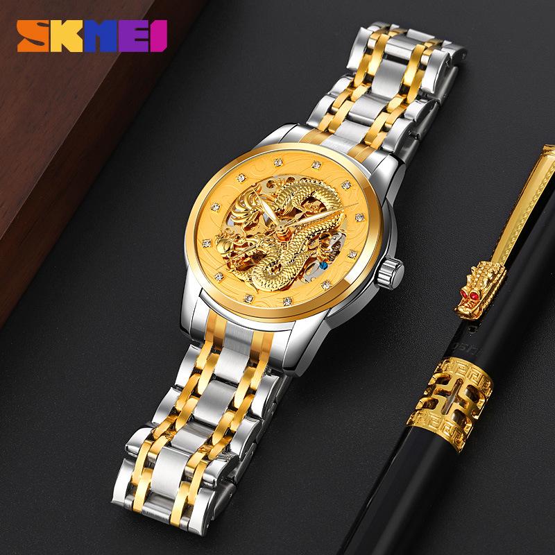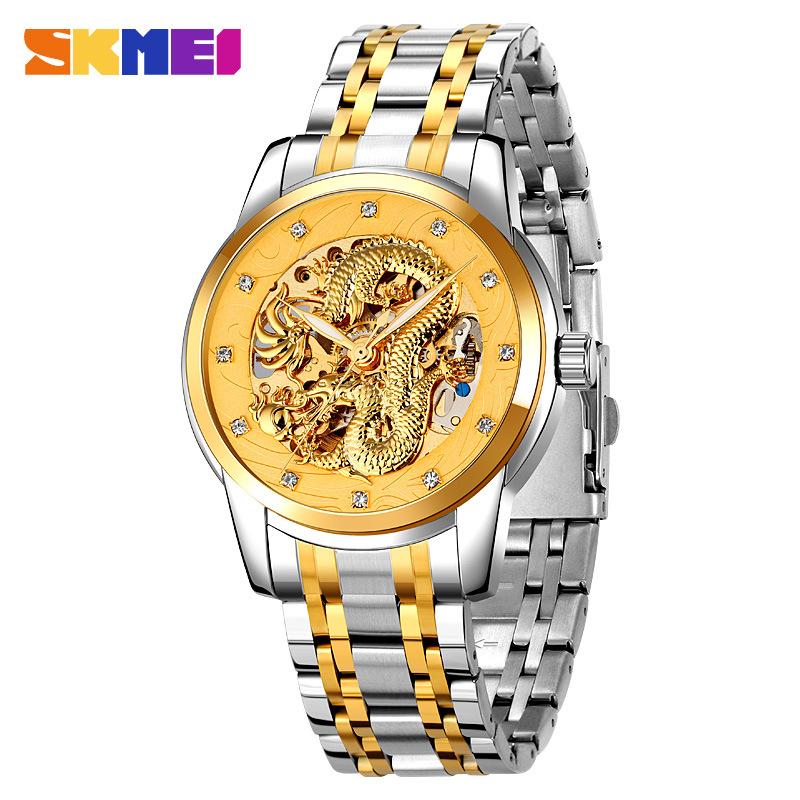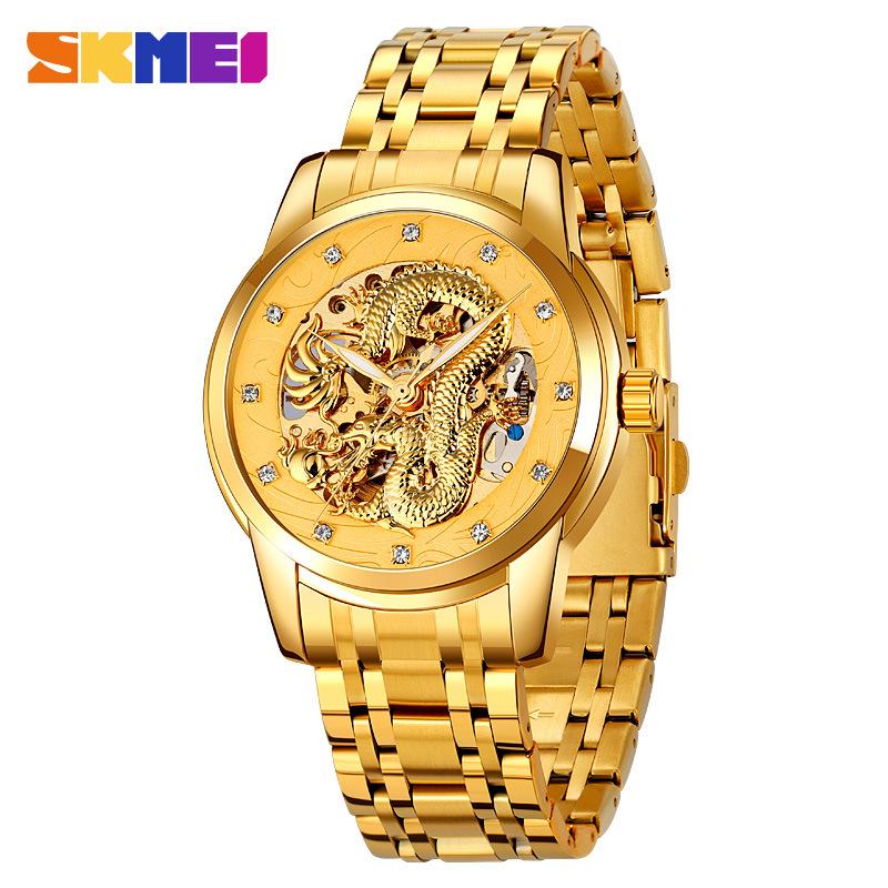 Модные мужские механические часы с полым дном, полностью автоматическим механизмом, водонепроницаемым стальным ремешком, деловые механические часы для мужчин