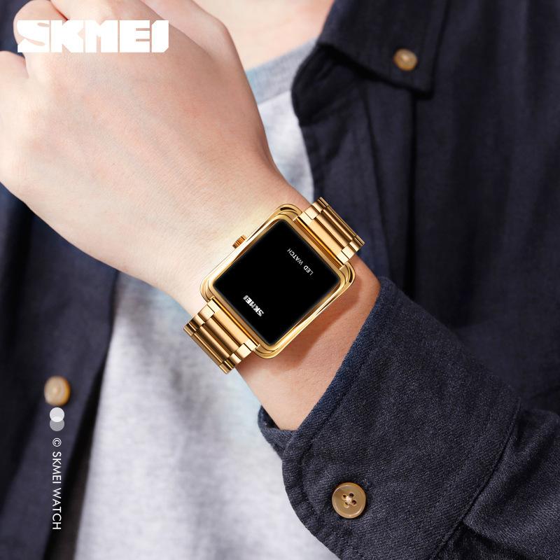 Модный тренд светодиодные квадратные электронные часы водонепроницаемый стальной ремешок мужские часы в наличии