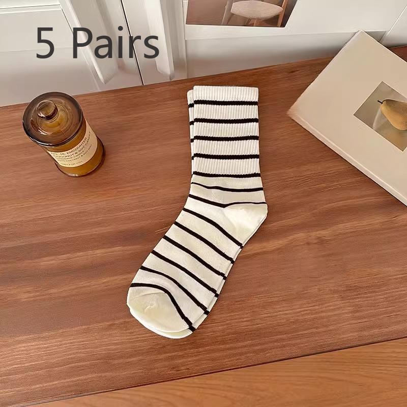 5 пар женских осенне-зимних полосатых носков средней длины из хлопка