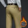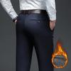 Классический стиль зимние теплые мужские деловые прямые повседневные брюки из эластичной ткани офисные брюки флисовые утепленные брюки
