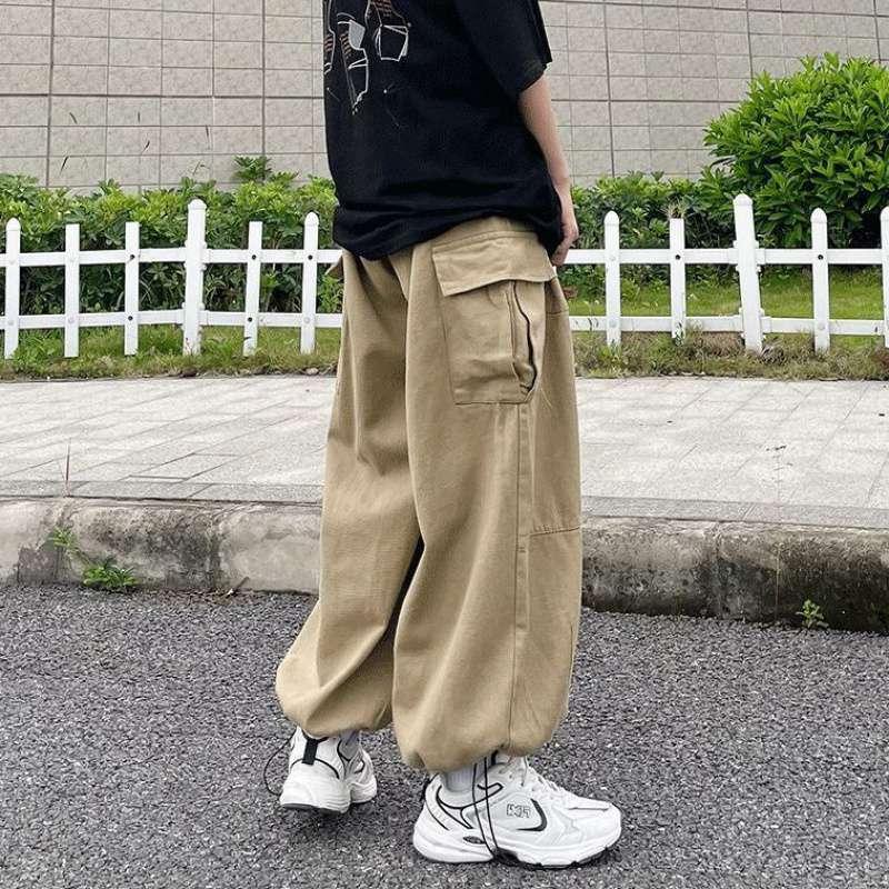 Повседневные брюки-карго большого размера для мужчин, уличная одежда, однотонные свободные прямые брюки в стиле Харадзюку, широкие мешковатые брюки для мужчин