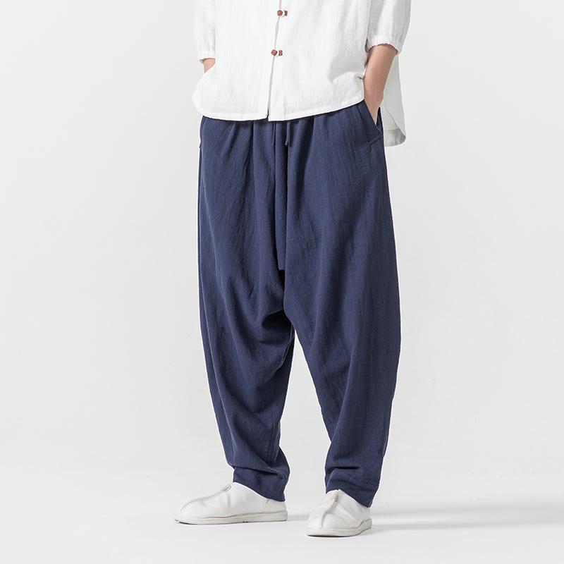 2025 Мужские хлопковые льняные брюки, шаровары, мужские мешковатые повседневные свободные джоггеры, широкие брюки для йоги, брюки с заниженным шаговым швом, хип-хоп — купить товар онлайн с бесплатной доставкой по всему миру!