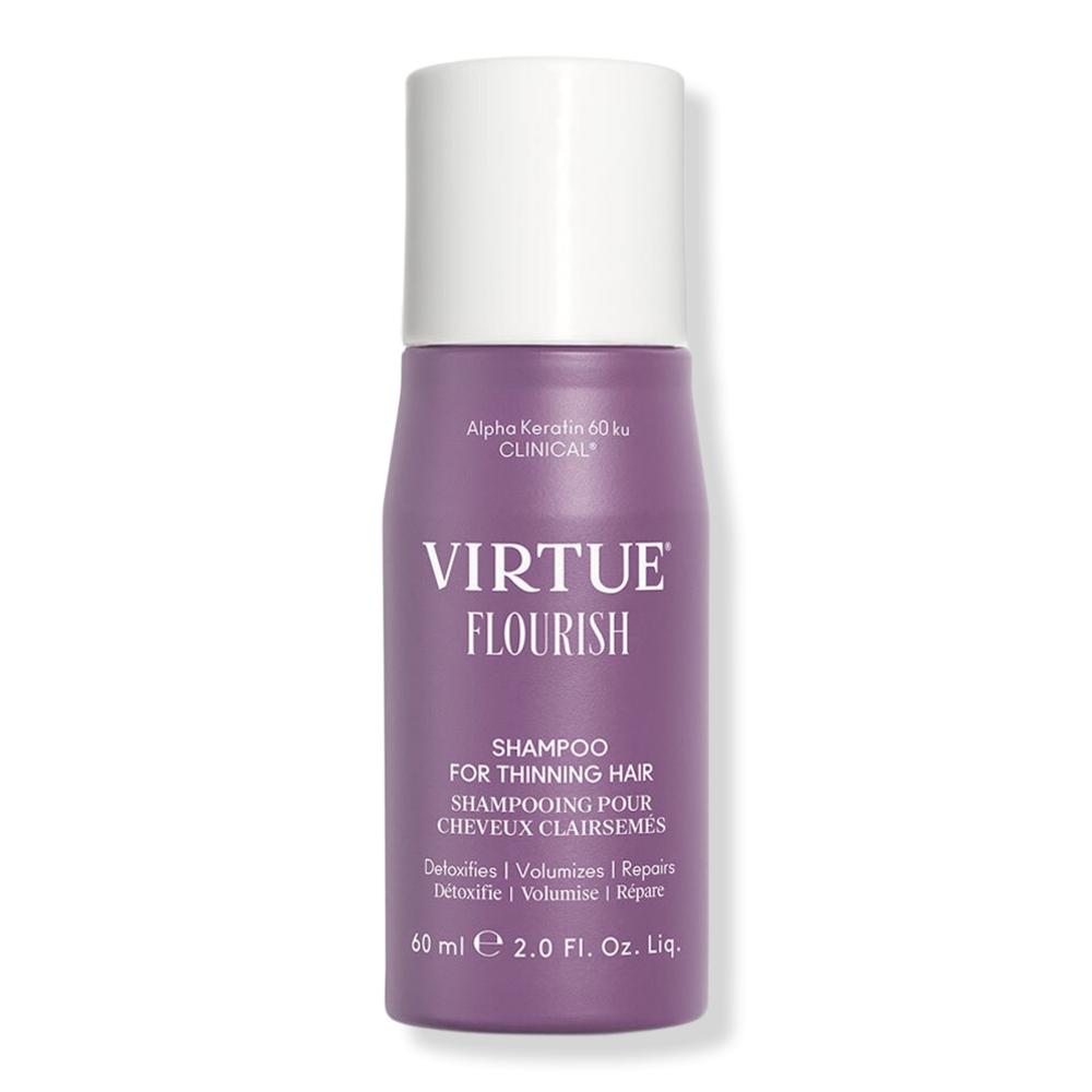 Шампунь Virtue Flourish для истонченных волос деликатно удаляет загрязнения с кожи головы, очищает стержень волоса и очищает от мусора отверстия фолликулов, создавая среду для здорового роста.
