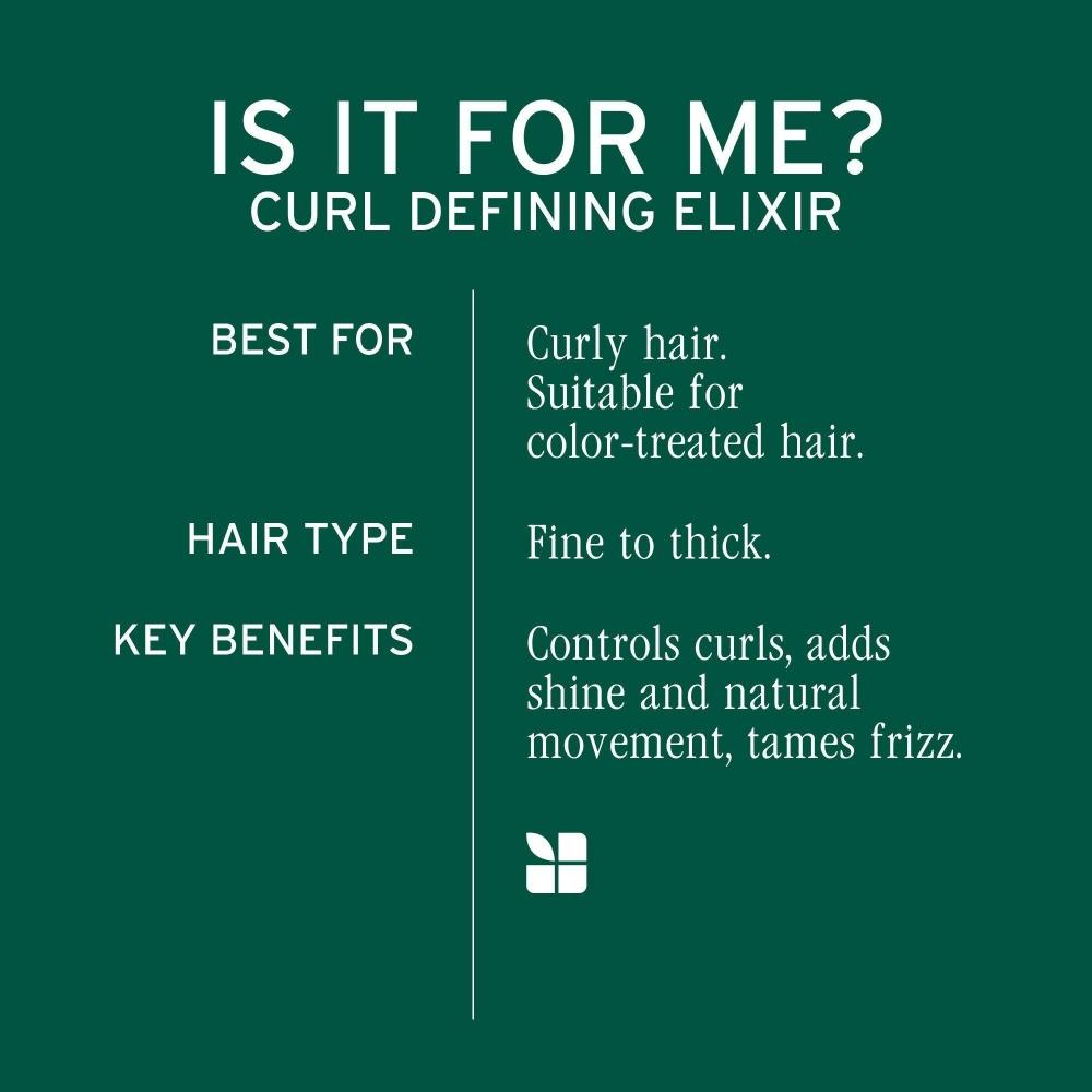 Откройте для себя эликсир Biolage Curl Defining Elixir для ощутимой текстуры и длительного контроля за вьющимися волосами.. Этот текстурирующий гель усиливает блеск и кондиционирует локоны, не делая их жесткими.. Не содержит парабенов, минеральных масел, красителей и спирта.