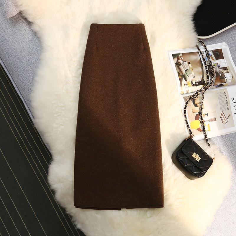 Шерстяная юбка средней длины, женская, новый зимний стиль, высокая талия, разрез, прямая юбка, закрывающая бедра, юбка