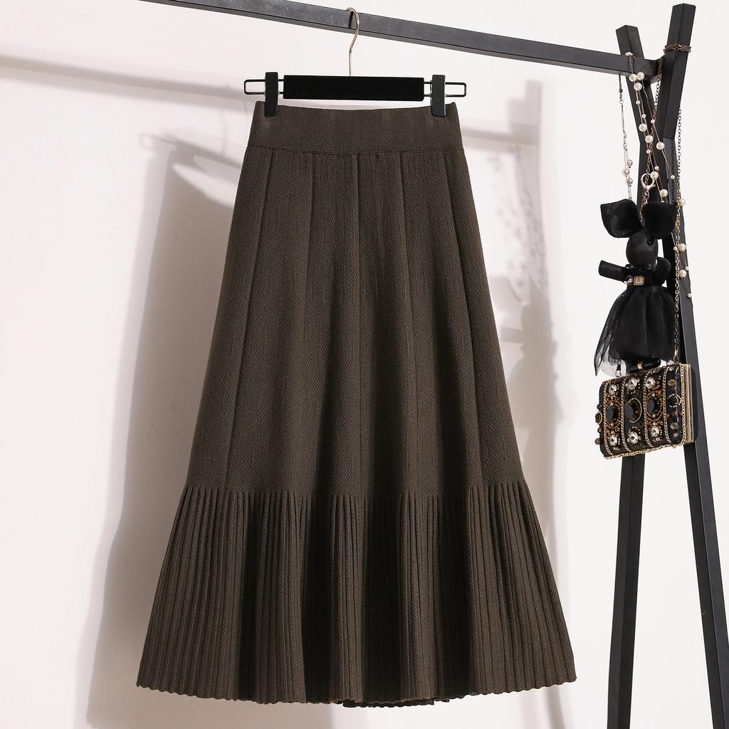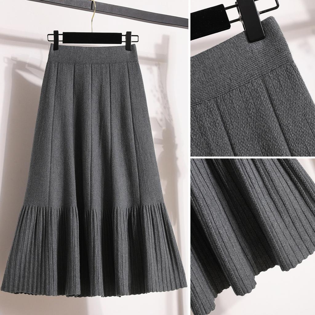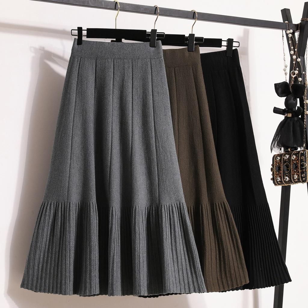 Fat Mm Корейский стиль Универсальная и модная, уменьшающая возраст, утягивающая трикотажная юбка средней длины с оборками