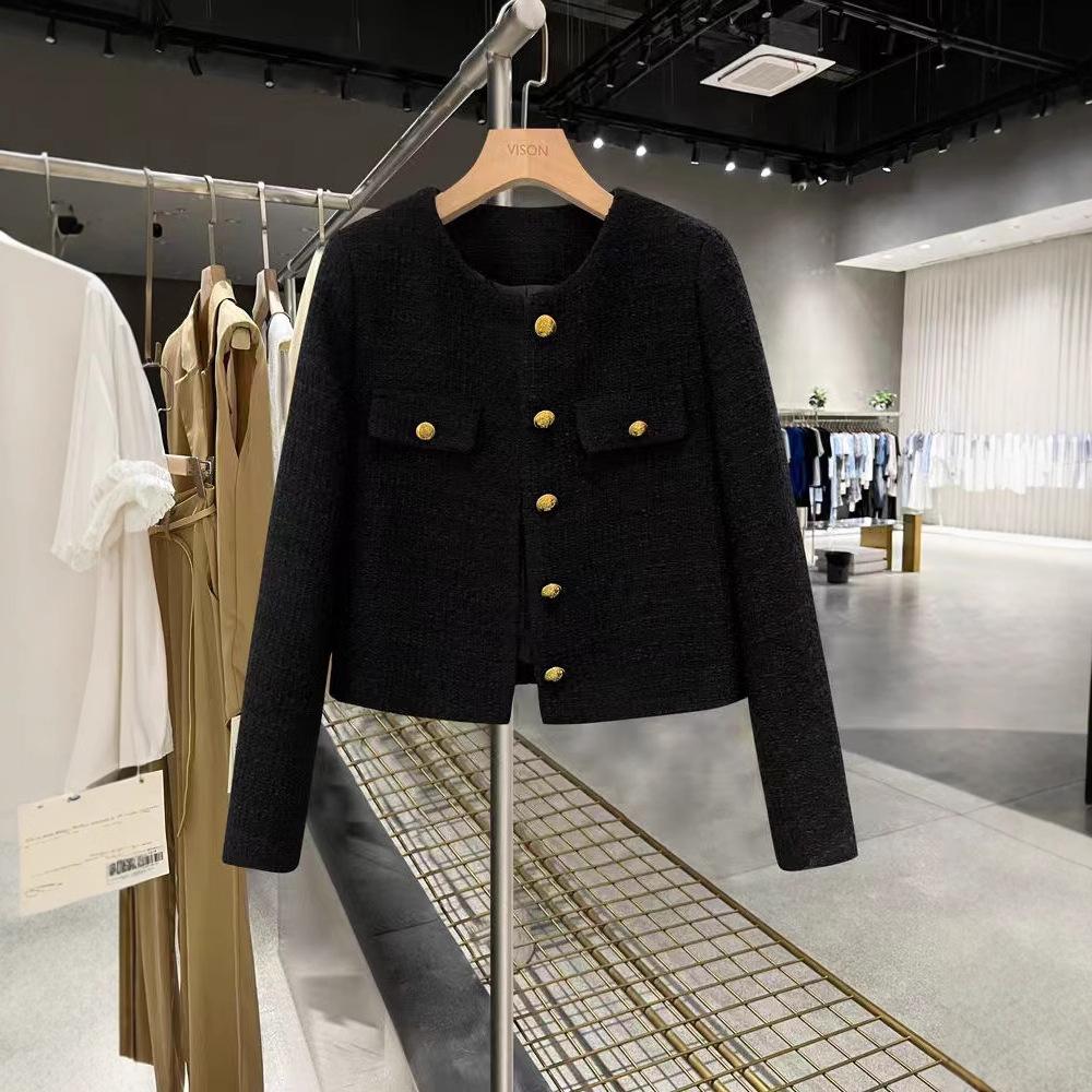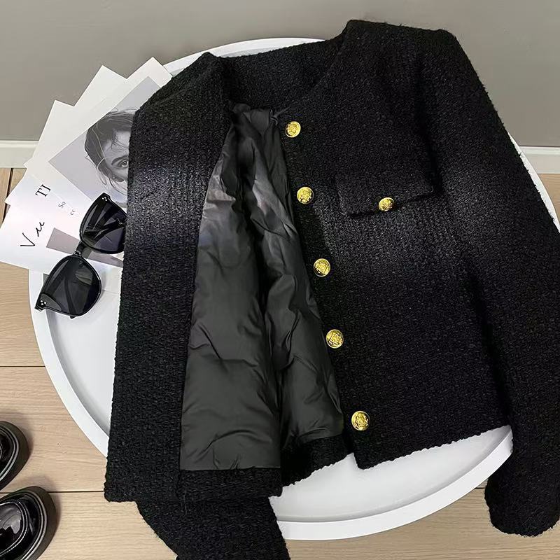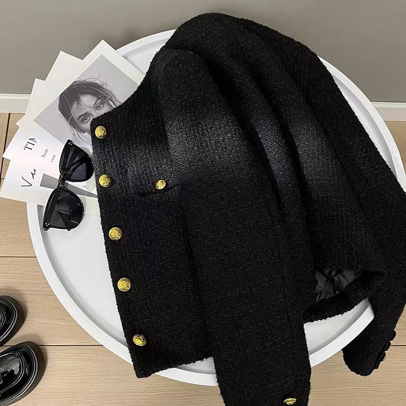 Французский твидовый бархатный черный топ в зимнем корейском стиле, утолщенная короткая куртка с небольшим ароматом для женщин
