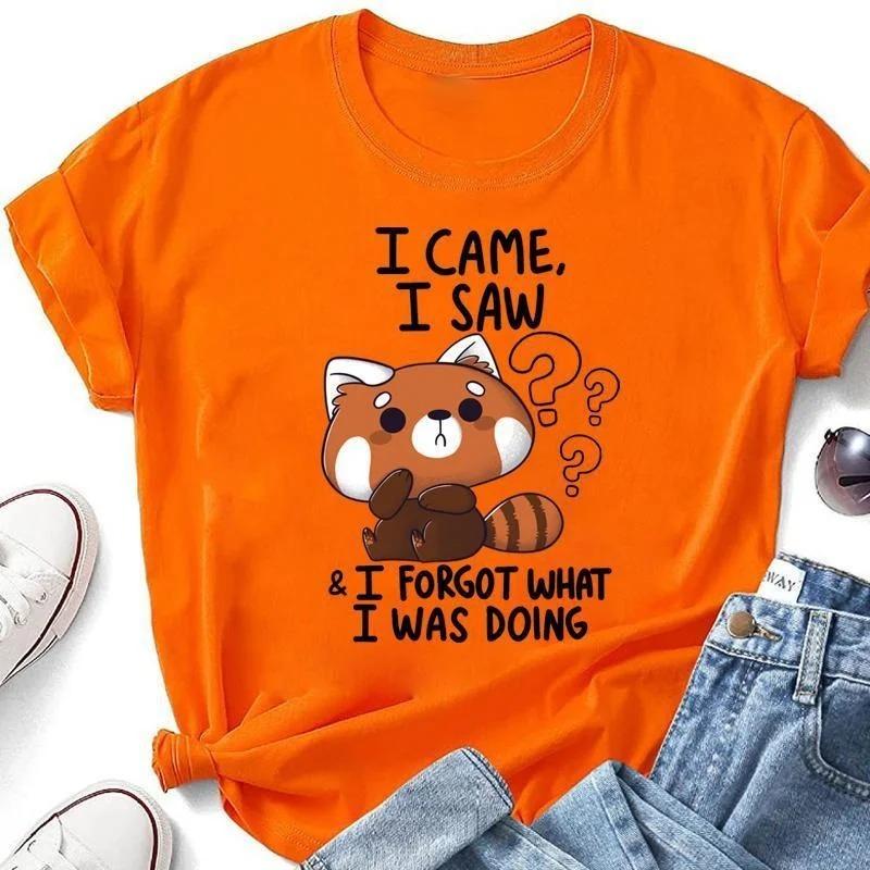 Милые футболки с изображением енота «Я пришел и увидел» для женщин, летняя футболка, женские повседневные футболки с коротким рукавом и круглым вырезом