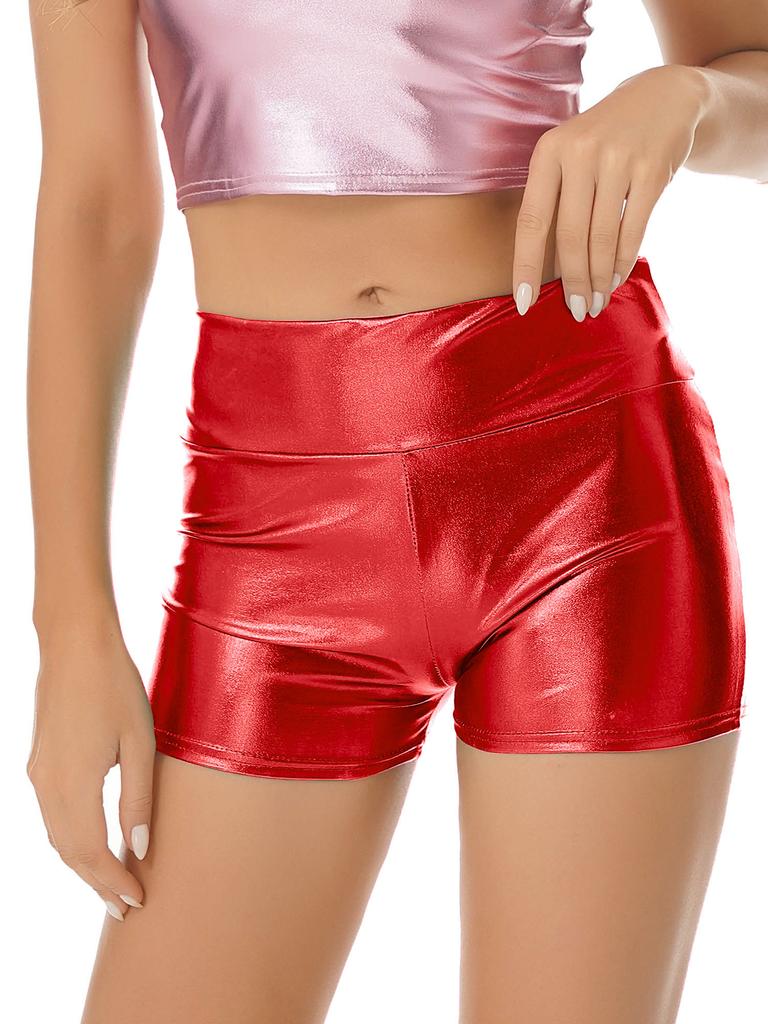 Женские лакированные кожаные шорты с металлическим блеском и высокой талией, клубная одежда для рейв-вечеринок