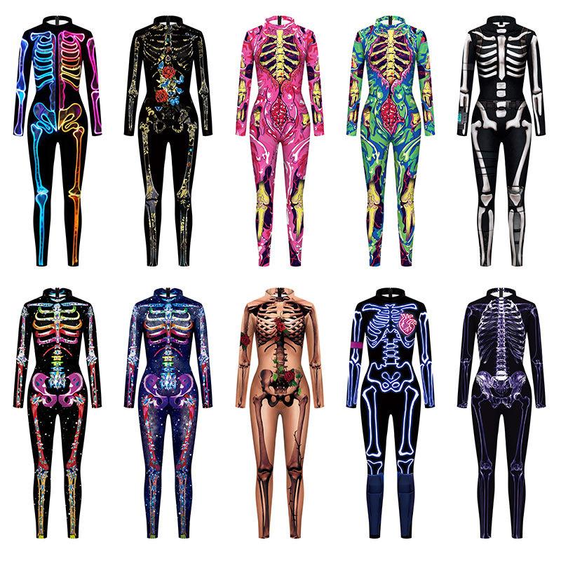 3D Череп Скелет Печатный Боди Костюм Хэллоуин Для Женщин Нарядное Платье Одежда Взрослый Костюм S-XL