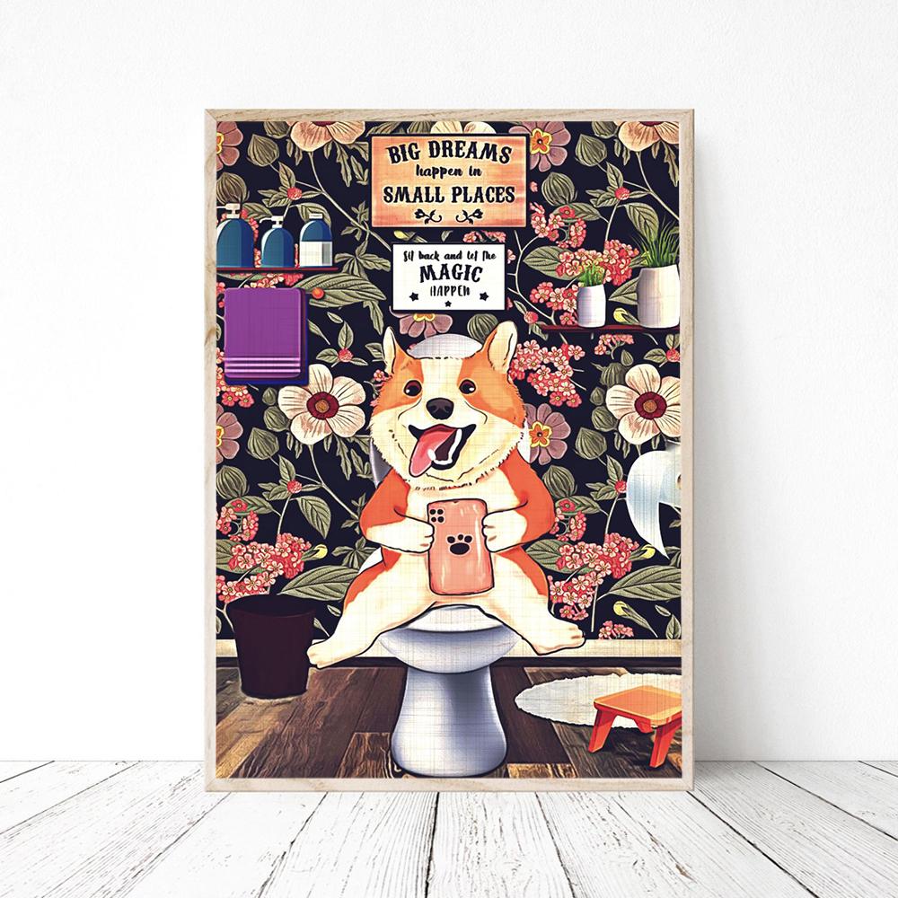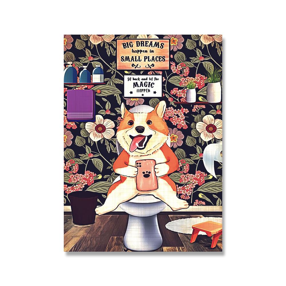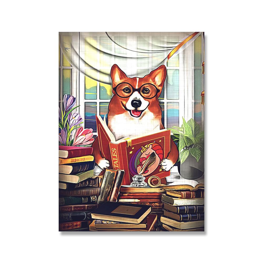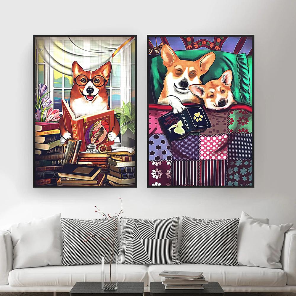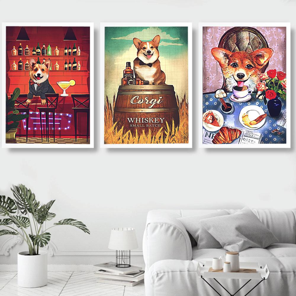 Забавная собака пьет плакат с принтом, винтажная еда, кухня, искусство, животное, читающая книга, холст, картина, украшение для столовой, стены, изображение (с рамкой)