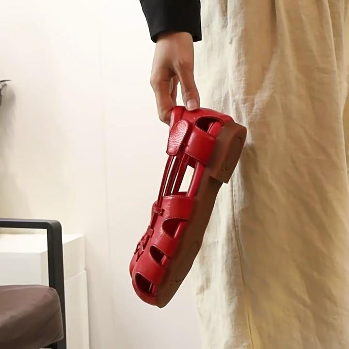 Johnature Сандалии из натуральной кожи высокого качества с открытым носком на плоской подошве в стиле ретро для женщин