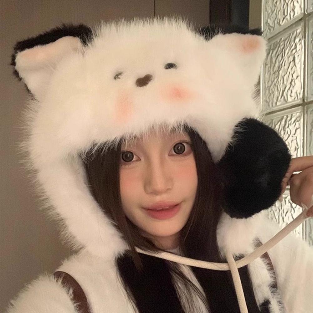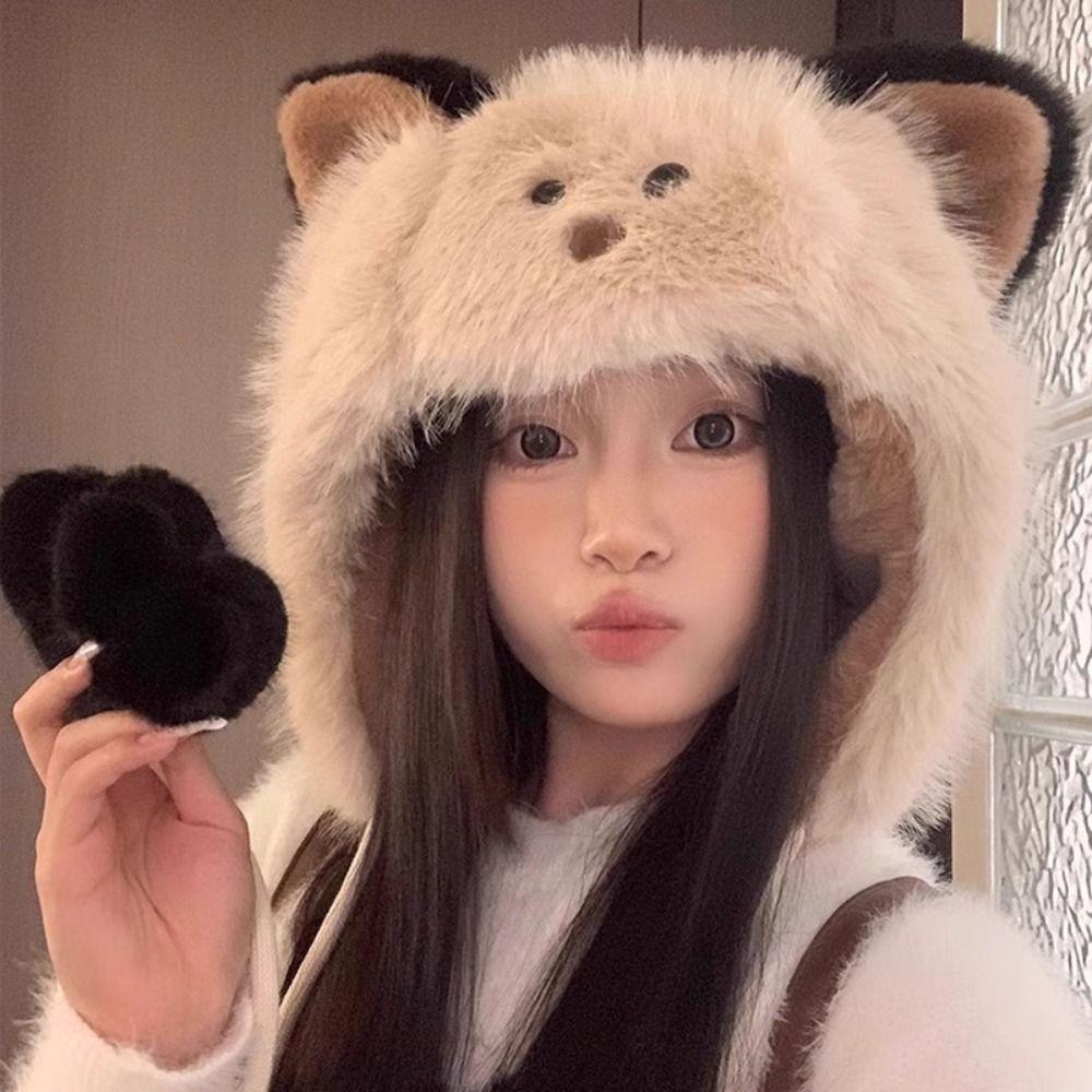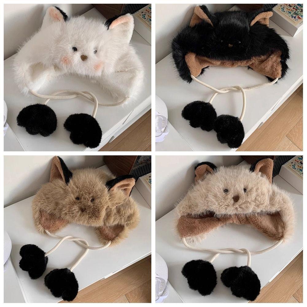 Korean Cute Ear Hat Warm Pompom Beanie Cap Winter Women Fluffy Hat Girls