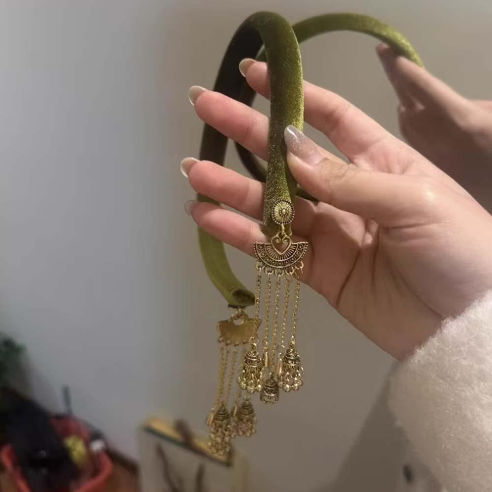 Цинковый сплав цинка колокольчик кисточка ободок для волос флокирование этнический стиль ободок для волос аксессуары для волос винтажный обруч для волос для девочек