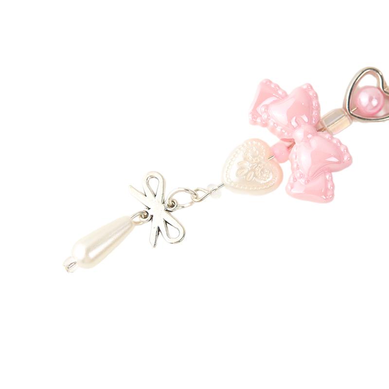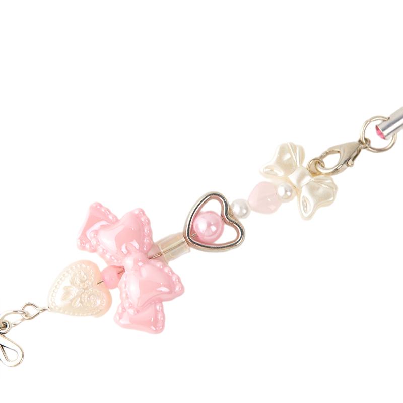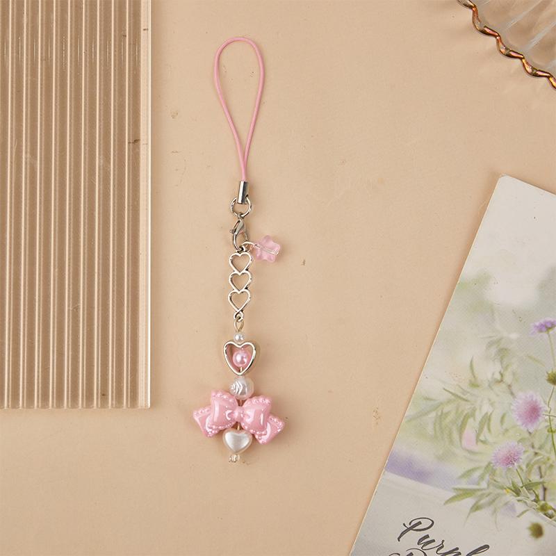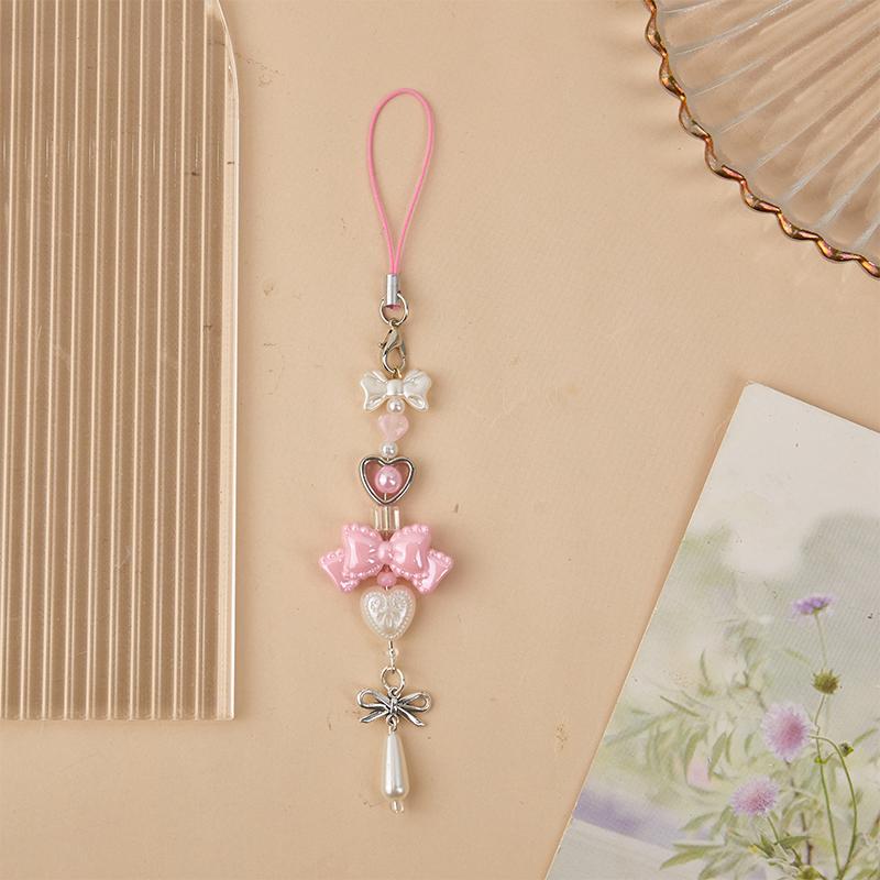 Y2K розовый бант сердце бисерный брелок милый мобильный телефон шнурок свежий универсальный кулон сумка кошелек подвесное украшение