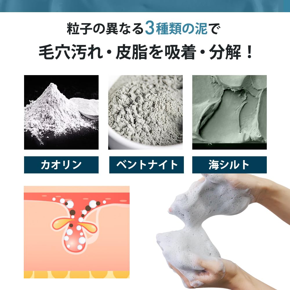 ⭐ [Против прыщей, забитых пор, жирного блеска, сухости и огрубевшей кожи] Три вида грязи и древесный уголь прочно впитывают грязь из пор, кожное сало и омертвевшие клетки кожи, ухаживая за грязью в порах!