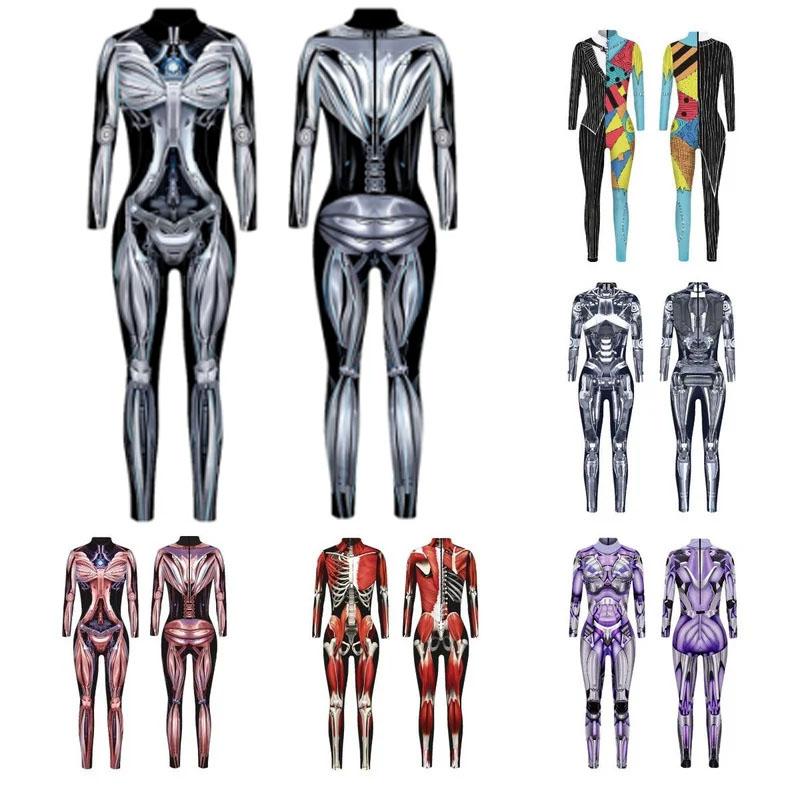 Новый робот броня 3D цифровая печать мышцы кости колготки зентай женский Хэллоуин косплей сексуальное боди 2024