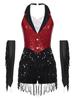Женский купальник для латинских танцев с бретелькой через шею, без рукавов, с открытой спиной, с блестками, кисточками и металлическими перчатками, одежда для выступлений