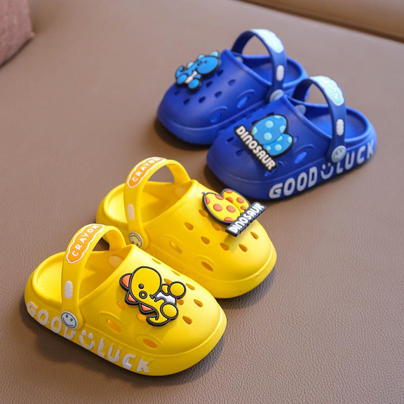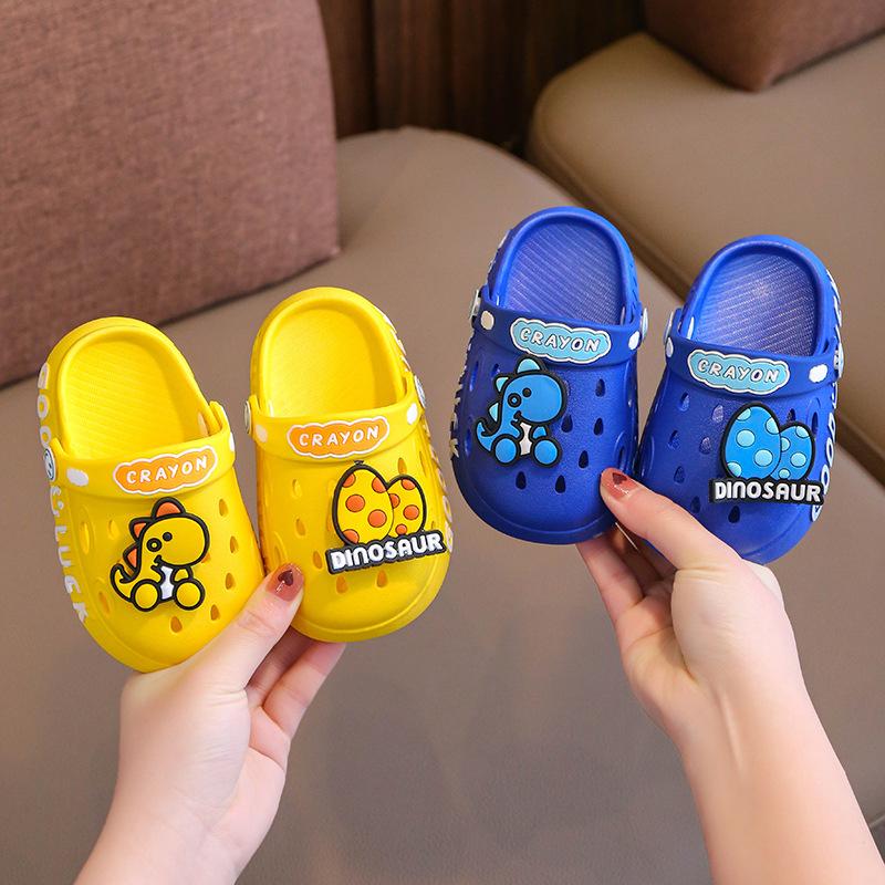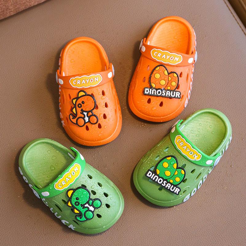 Детские сандалии летние для мальчиков и девочек с изображением динозавра домашние тапочки для дома нескользящие детские тапочки с дырочками детская обувь Sapatos