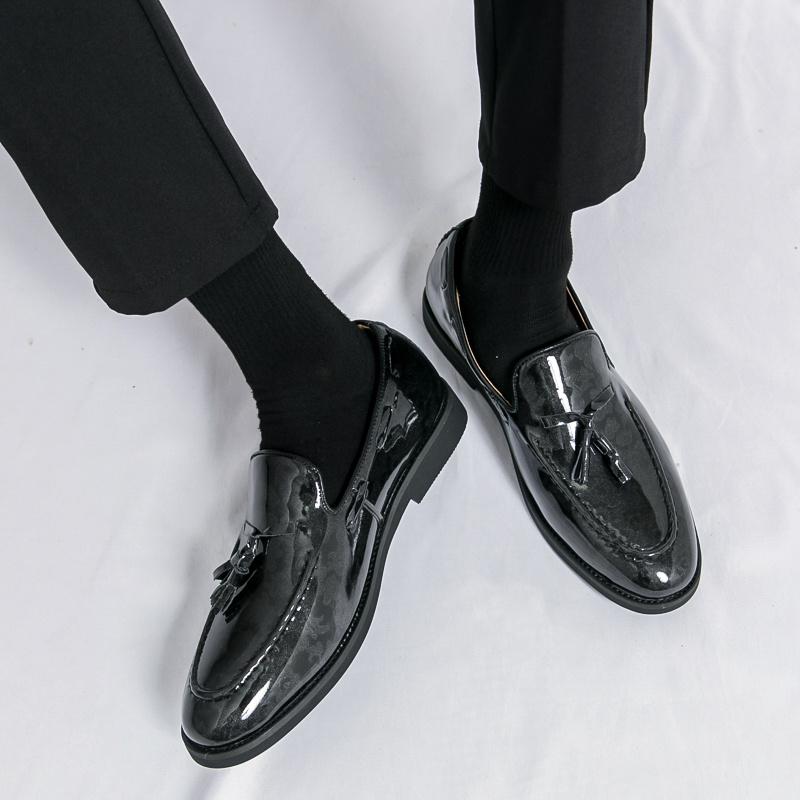 2024 Модные белые удобные кожаные туфли с круглым носком, элегантные мужские туфли с кисточками, без застежек, размер плюс 46, официальная обувь для свадьбы