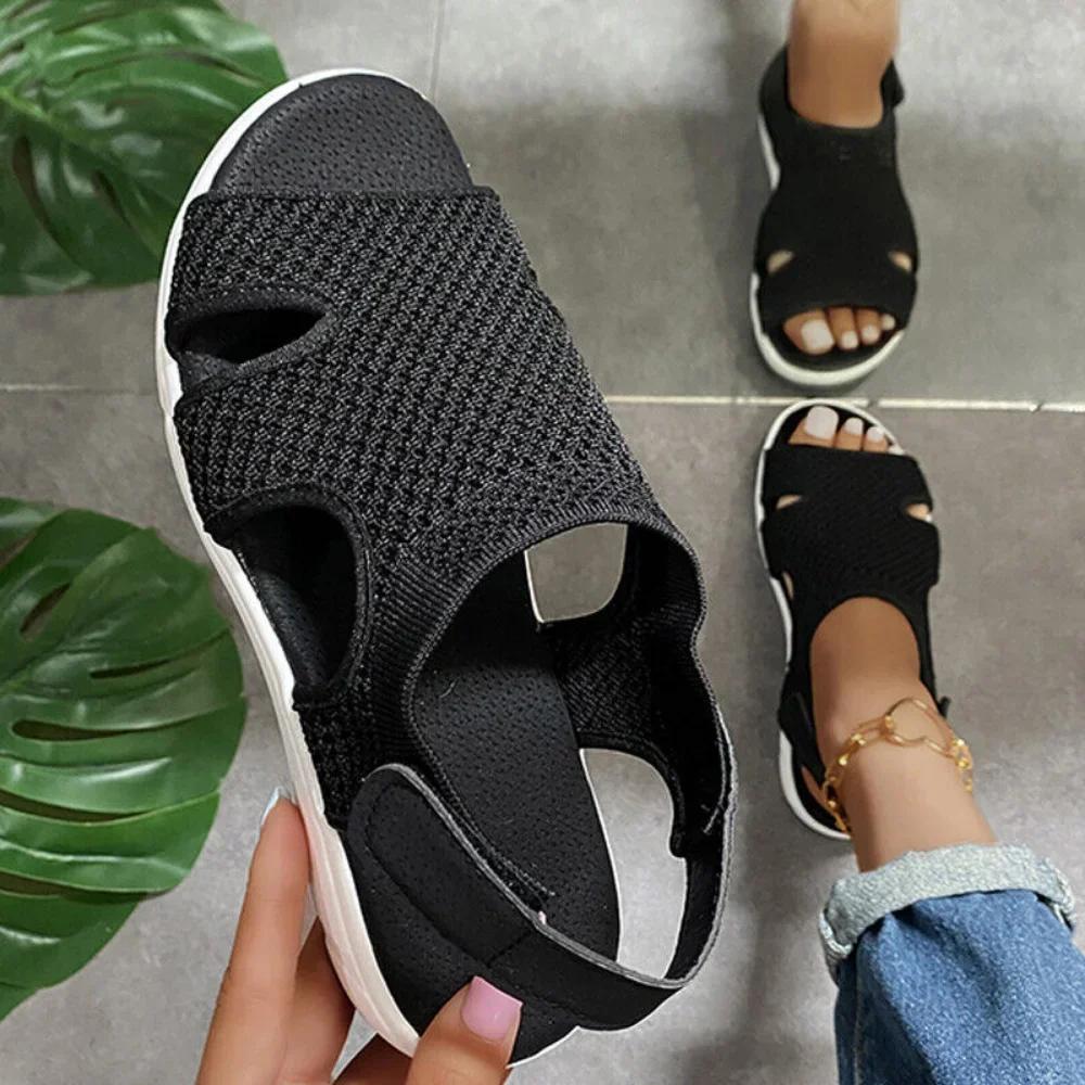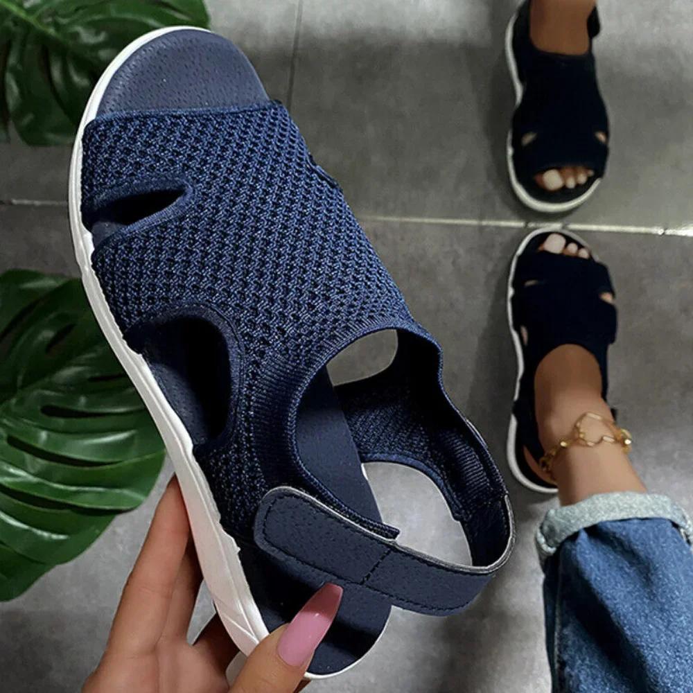 Летние женские сандалии, уличные дышащие легкие повседневные ортопедические сандалии на танкетке, женская модная удобная обувь на плоской подошве