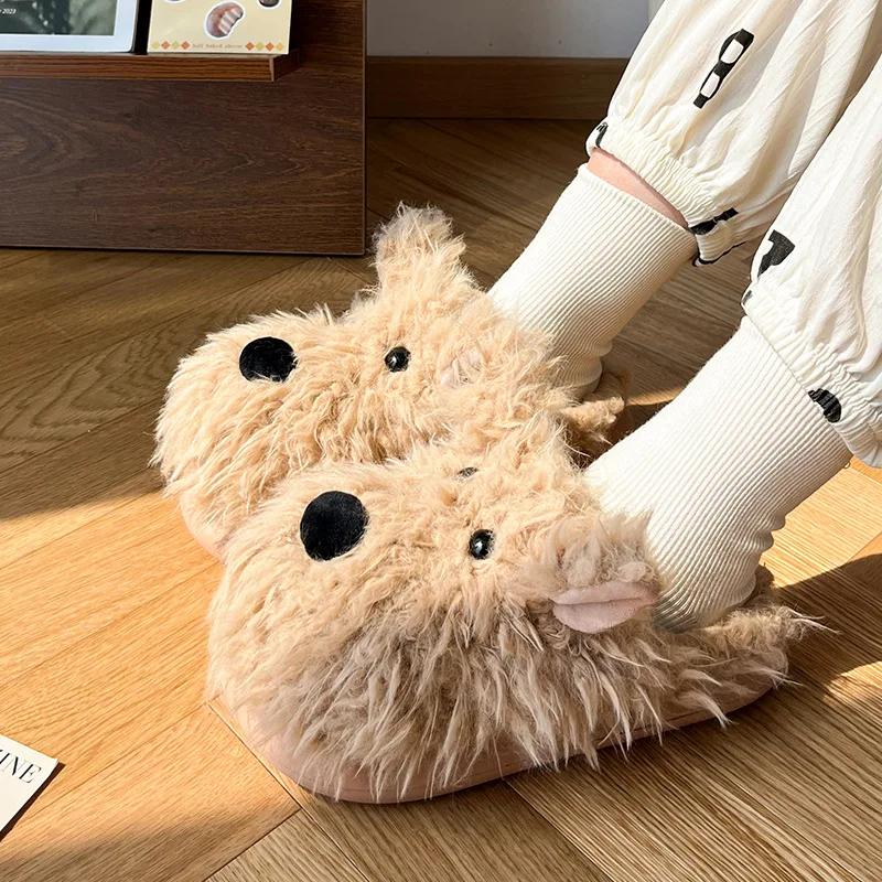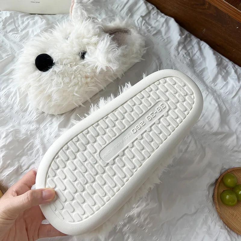 Женские пушистые мягкие домашние тапочки, зимние повседневные домашние тапочки с рисунком щенка из мультфильма, женские нескользящие домашние тапочки на плоской подошве