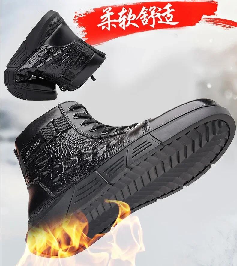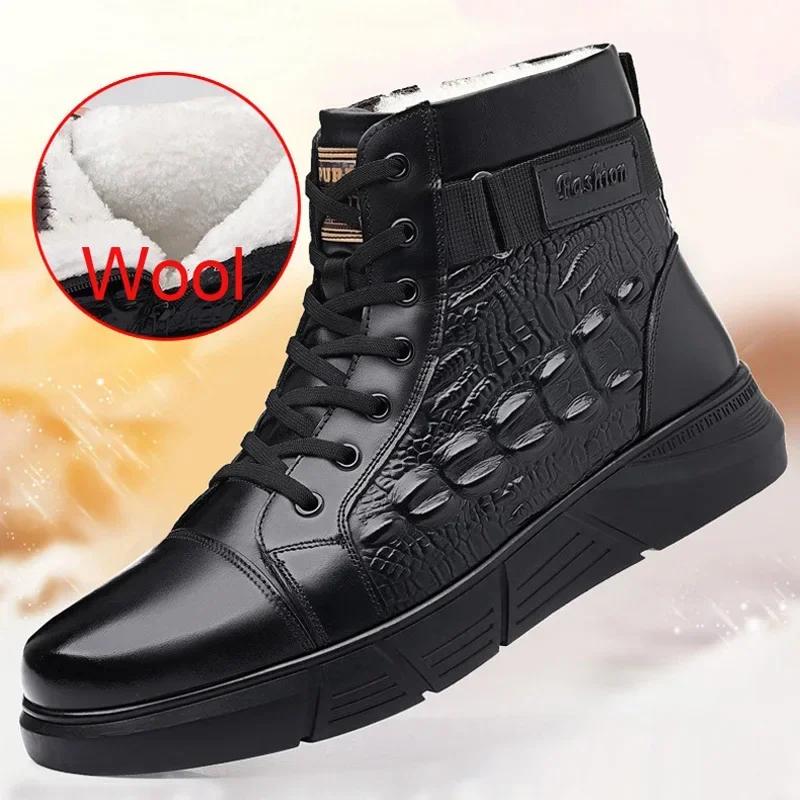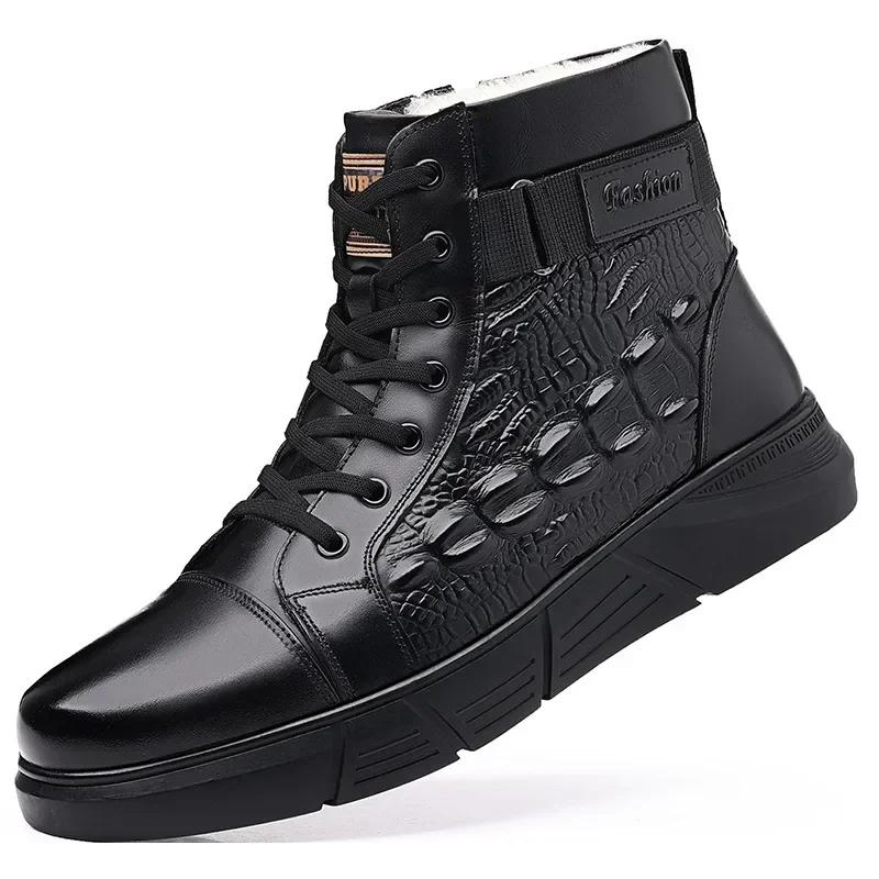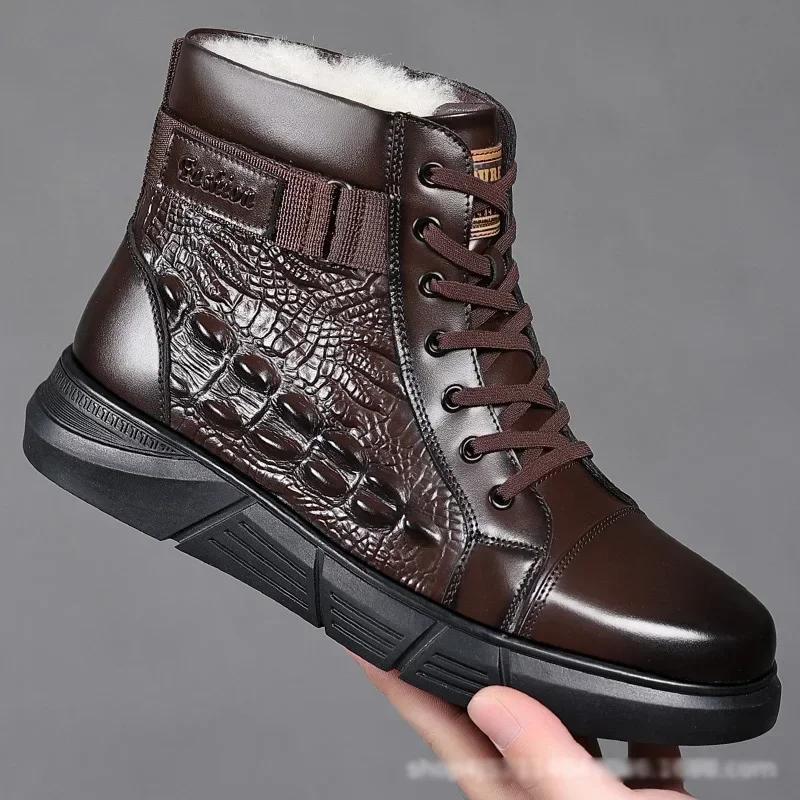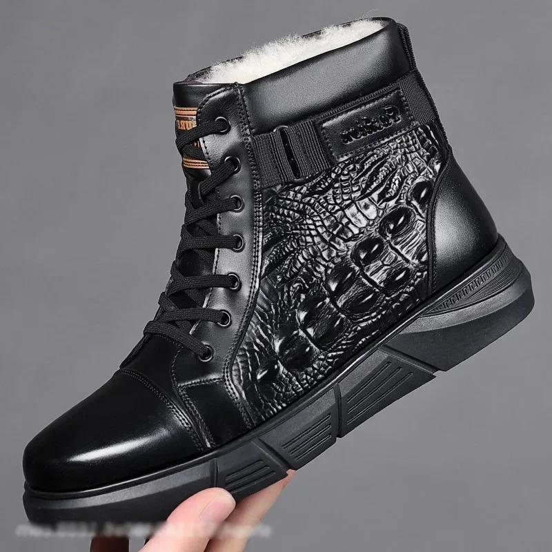 Новая зимняя обувь для мужчин, шерстяные сапоги, высокие ботинки из натуральной кожи, повседневная обувь для активного отдыха, крокодиловый принт, зимние сапоги