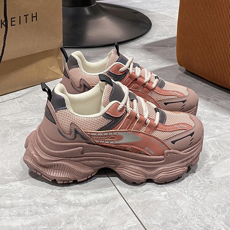 Новые осенние женские кроссовки в стиле папы на толстой подошве, универсальные уличные кроссовки, женская спортивная платформа, сетчатая вулканизированная обувь