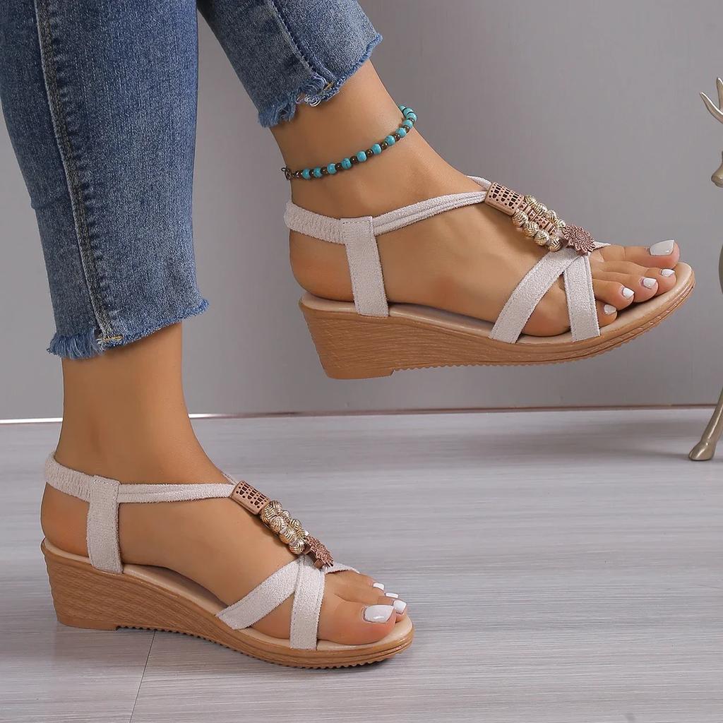 2024 Лидер продаж Новые плоские сандалии Женские босоножки на плоской подошве с бисером Бохо с открытым носком Милые студенческие пляжные туфли Сандалии Женские
