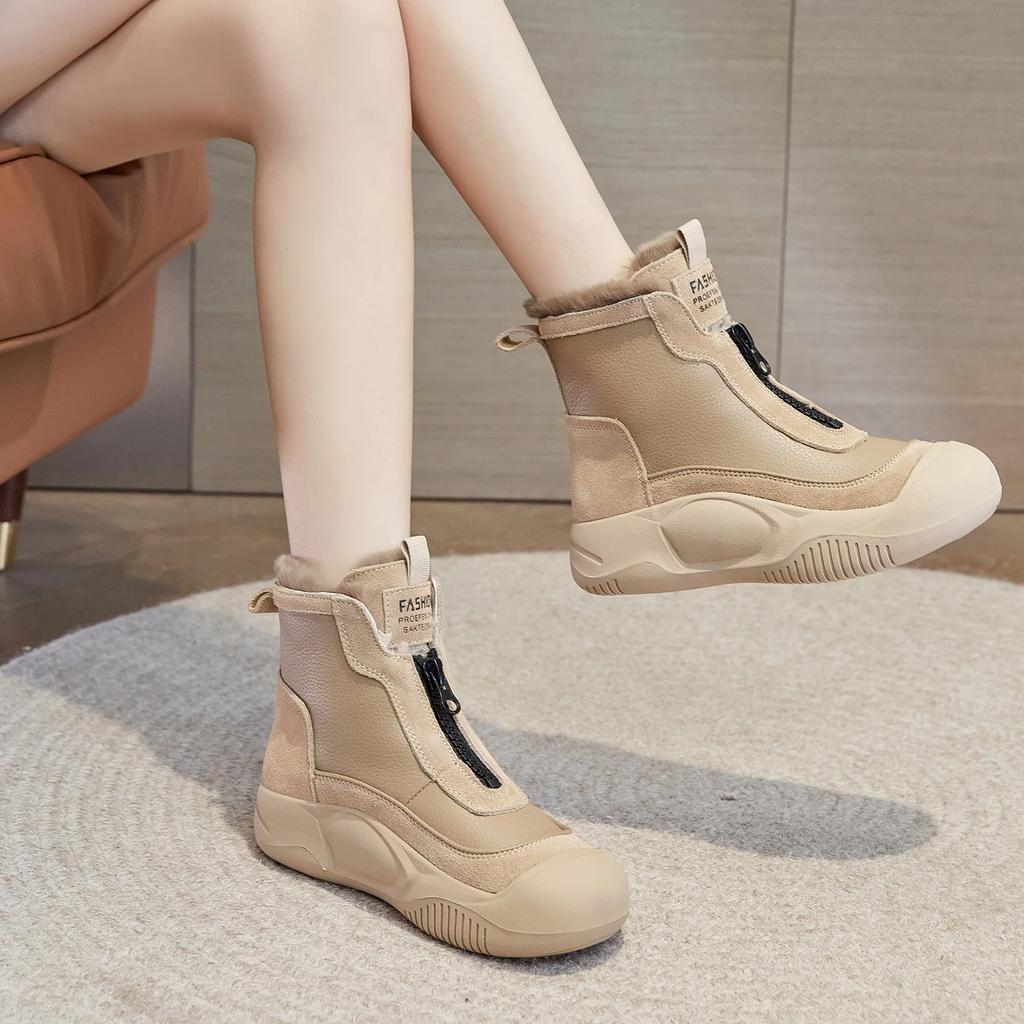 Новые зимние ботинки женские зимние ботинки из натуральной кожи нескользящие увеличивающие рост 4,5 см теплые плюшевые ботильоны для молодых женщин D239
