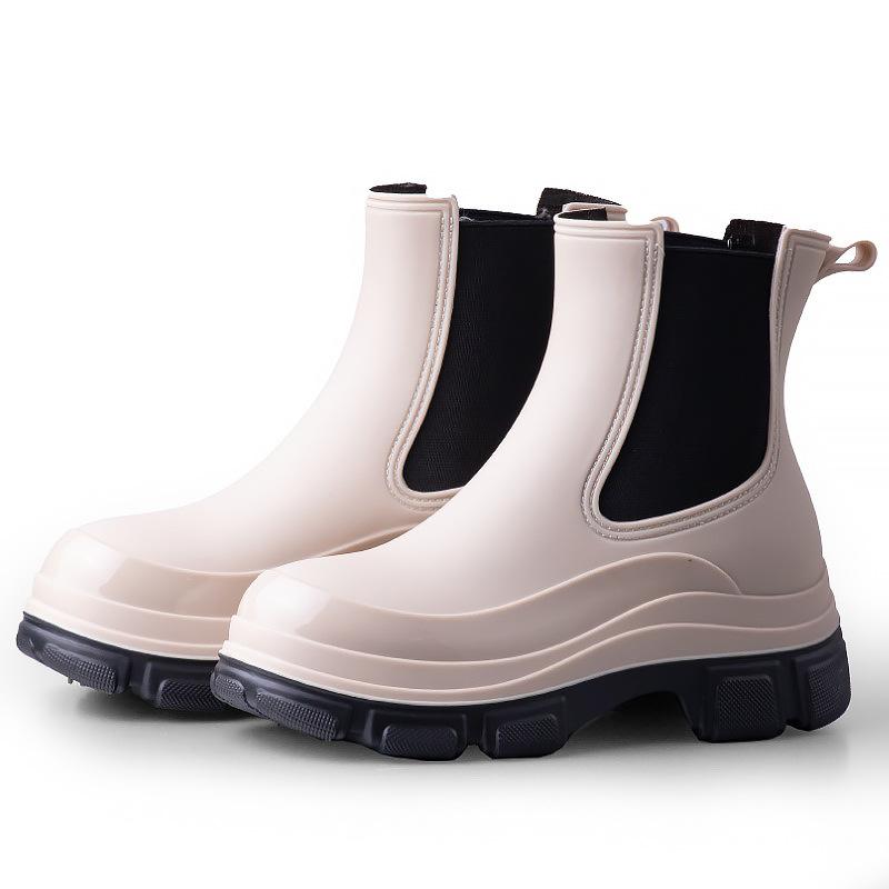 Роскошные новые женские резиновые сапоги до щиколотки, водонепроницаемая обувь на толстом каблуке, женские ботинки челси на платформе, женские толстые галоши для работы в саду