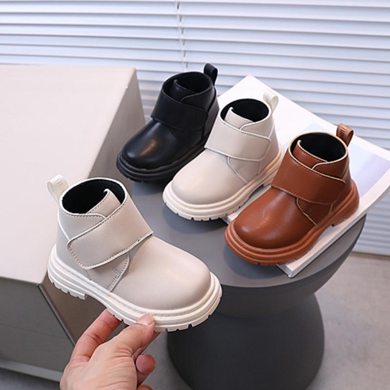 Модные ботинки для девочек, универсальные модные туфли для мальчиков с неглубоким носком и мягкой подошвой, нескользящие, простые однотонные короткие ботинки