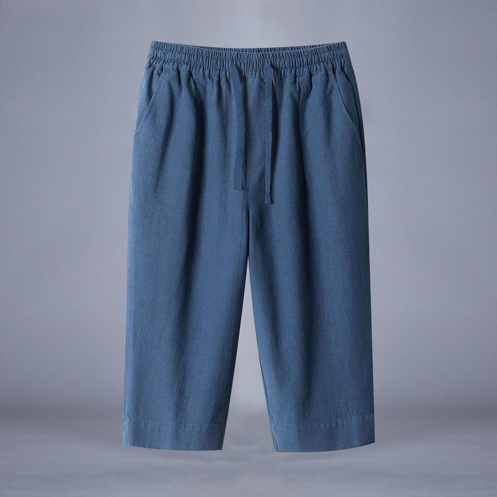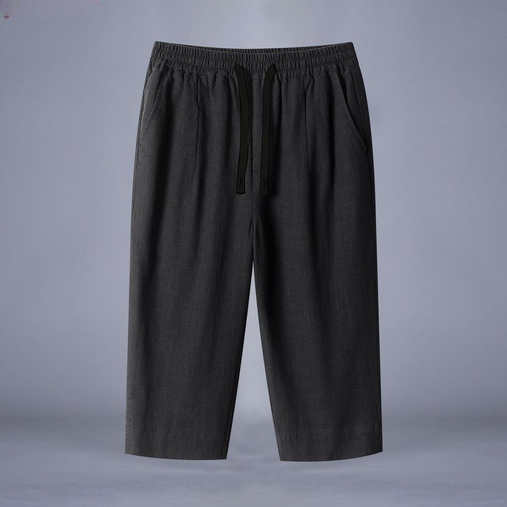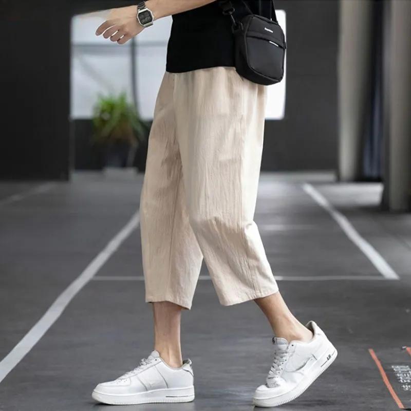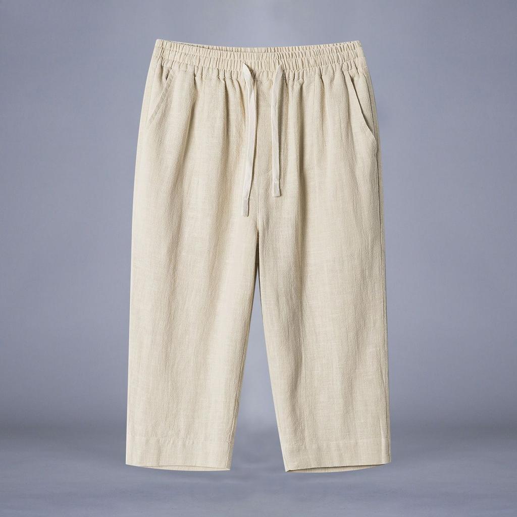 Мужские летние брюки из хлопка и льна с 7-точечными застежками, свободные тонкие прямые шорты, льняные пляжные брюки больших размеров