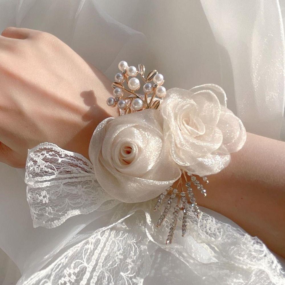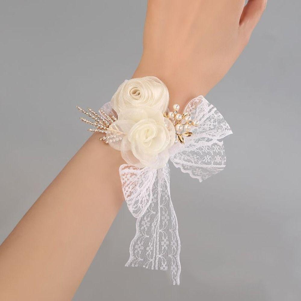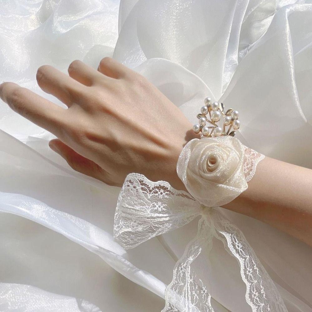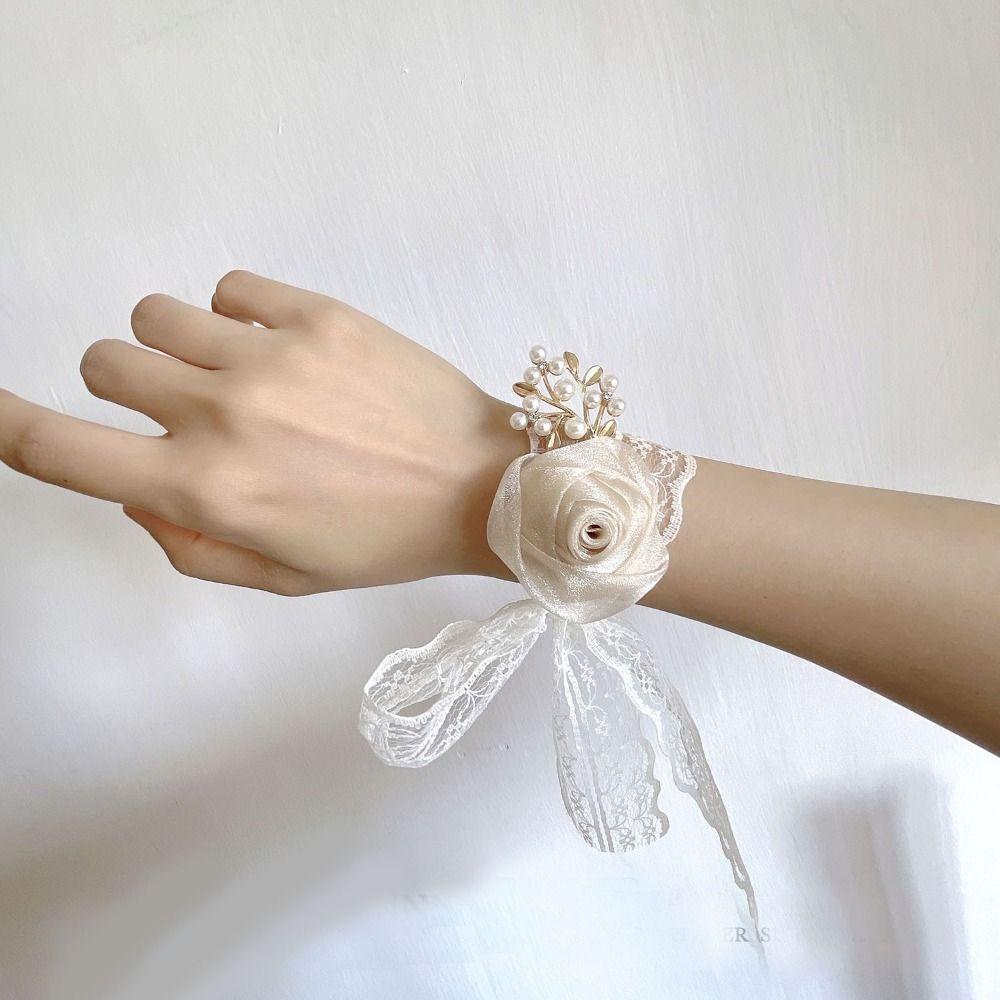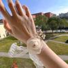 Изысканный свадебный браслет-браслет с цветком на запястье невесты, цветочным браслетом для подружки невесты, шелковой лентой