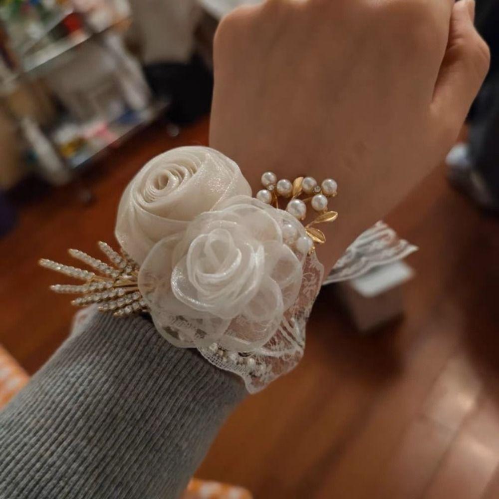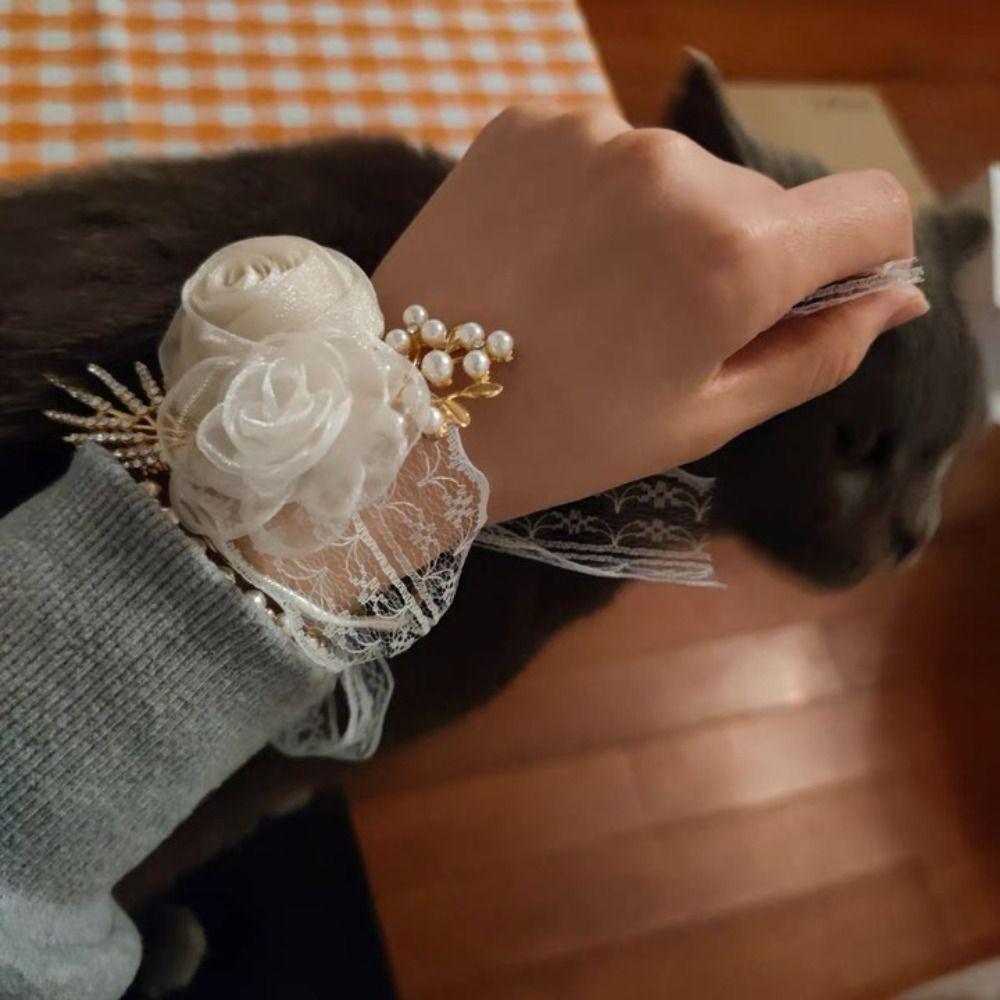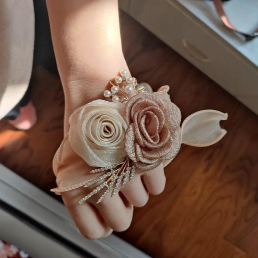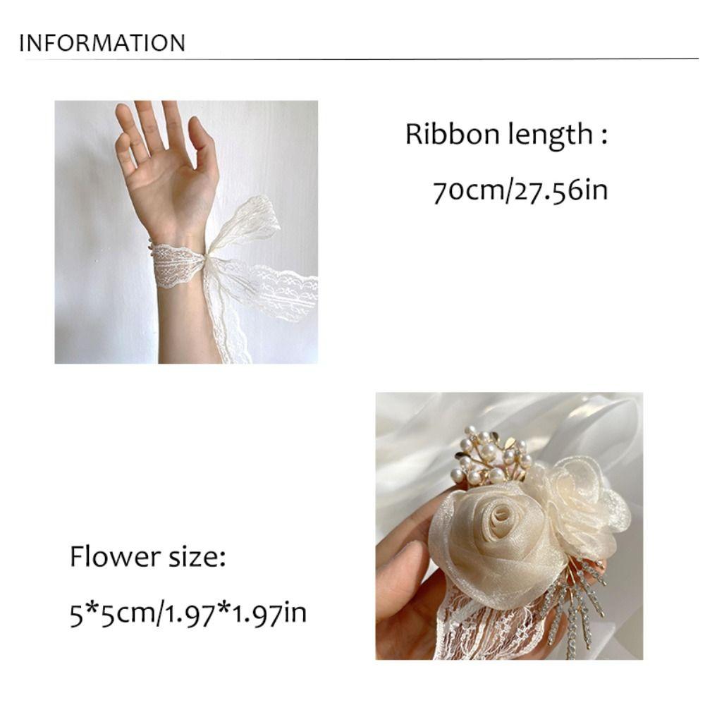 Изысканный свадебный браслет-браслет с цветком на запястье невесты, цветочным браслетом для подружки невесты, шелковой лентой