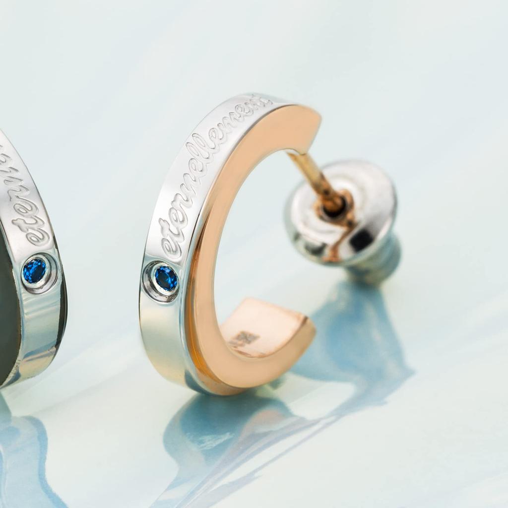 Earrings Surgical Stainless Steel Blue Diamond Half Hoop Cross Message Pink 1 piece for one ear 4SPE006GO [White Clover]