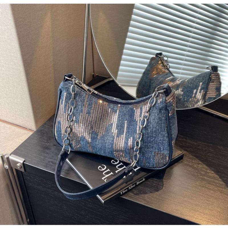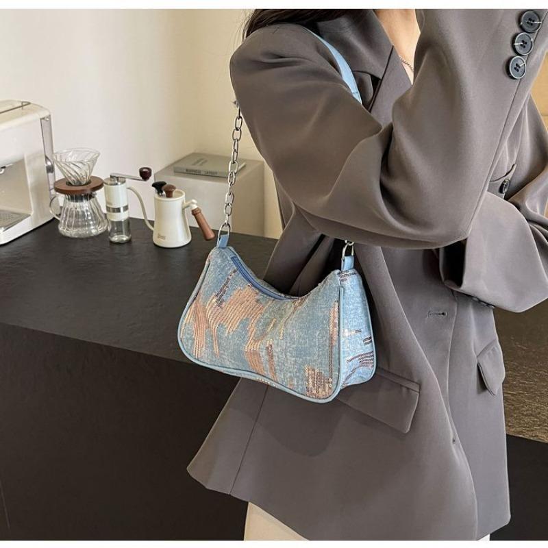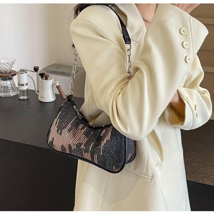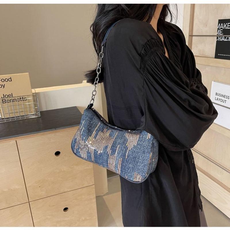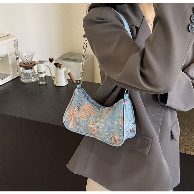 Сумка Niche Underarm, новая женская джинсовая винтажная сумка через плечо Pop-up, универсальная супер-популярная сумка на цепочке, женская сумка