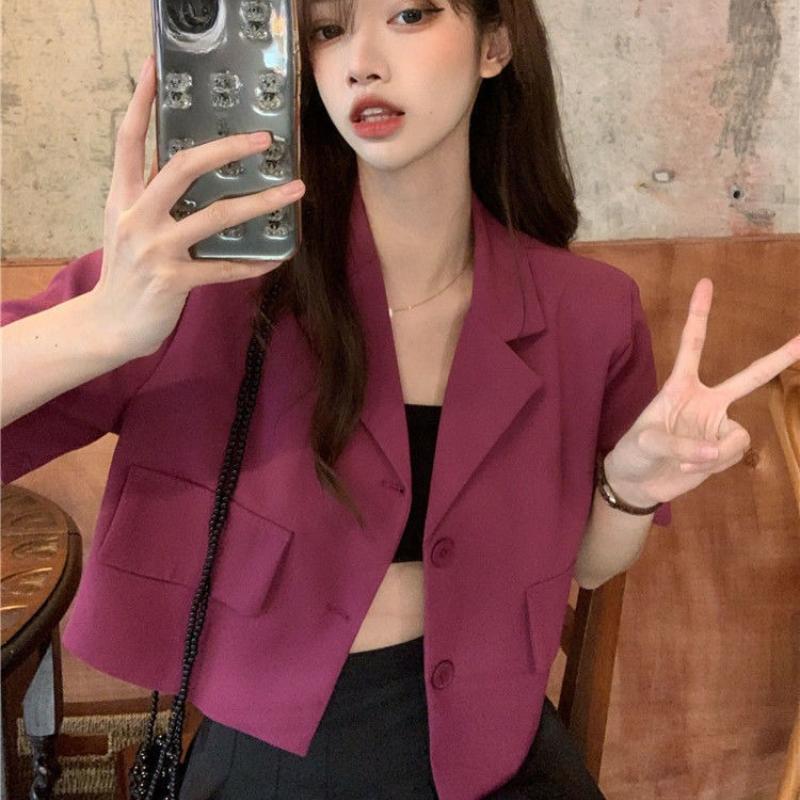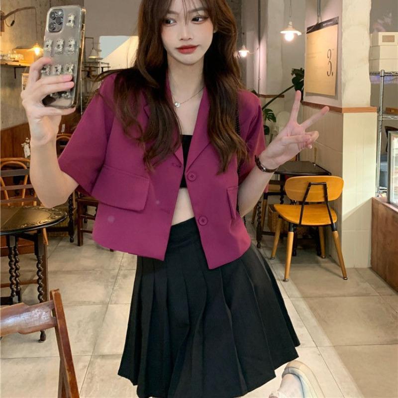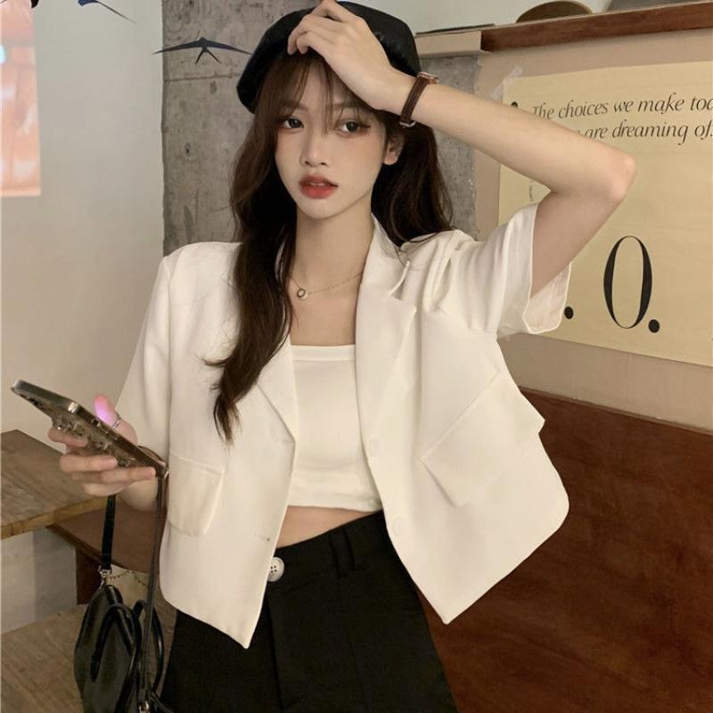 Костюм с короткими рукавами. Куртка с короткими рукавами. Женская весенняя корейская версия Ins Fashion Temperament. Тонкий и маленький костюм. Верх