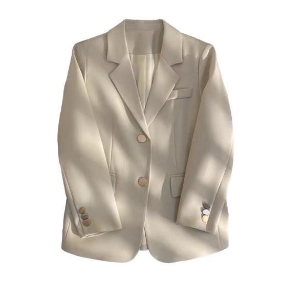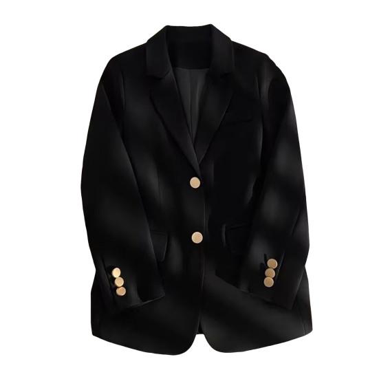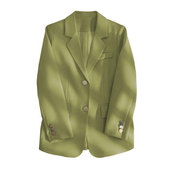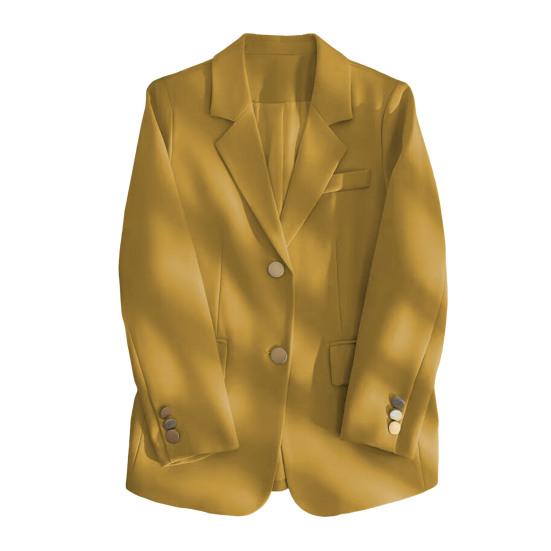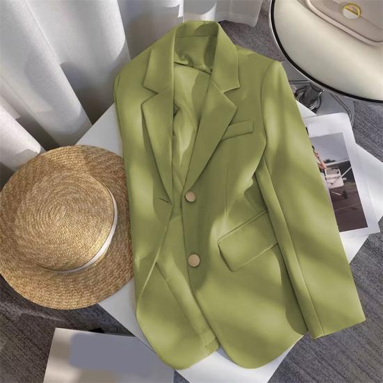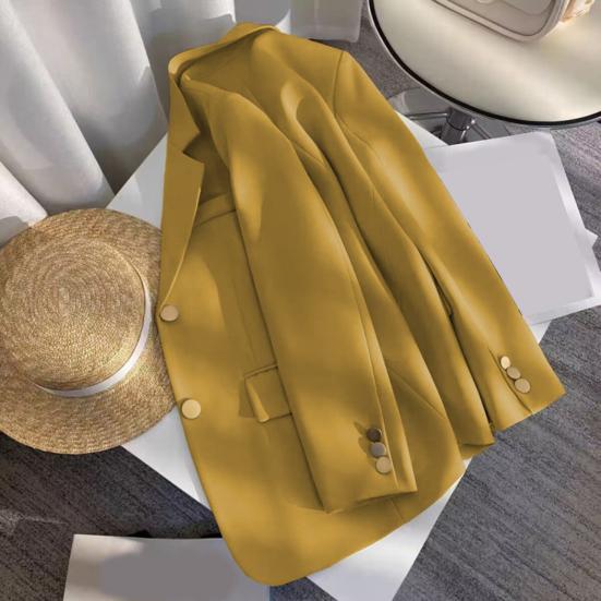Женский пиджак – универсальное и стильное дополнение вашего гардероба.. Эта куртка свободного кроя с классическими лацканами и длинными рукавами имеет повседневный свободный крой и застегивается на две пуговицы.. Однотонный дизайн придает ему ощущение высокого класса и делает его идеальным для различных случаев.
