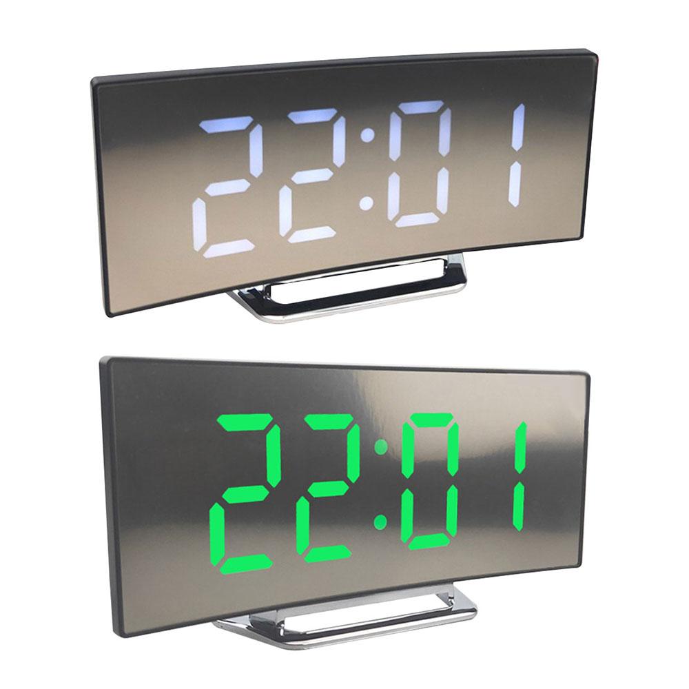 Светодиодные изогнутые электронные часы с температурой сна, зеркальный будильник, бесшумные часы у кровати для студентов, спальни, гостиной