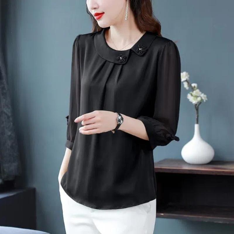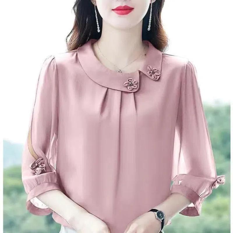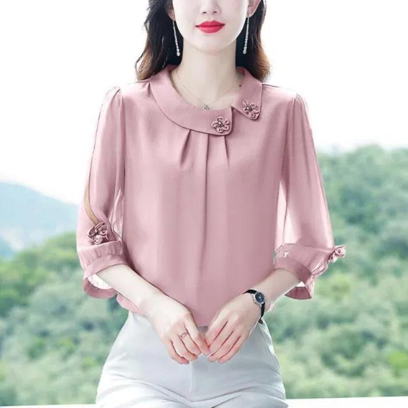 Женская одежда Темперамент шифоновая блузка Лето Половина рукава Твердый Плюс Размер Свободный Офис Тонкая рубашка Топы Мода Элегантный