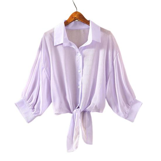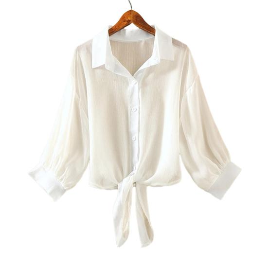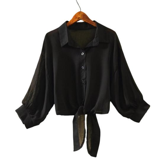 Лацкан и однотонный дизайн могут сделать вас очень привлекательным. Шифоновый прозрачный верх может удерживать окружающий вид.