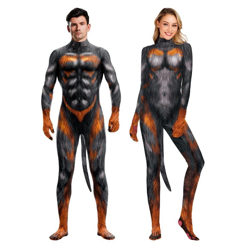 Мужской костюм на Хеллоуин, эластичный карнавальный костюм для фитнеса с животным, полный комбинезон с хвостом, женские цельные костюмы, костюм Зентай для взрослых