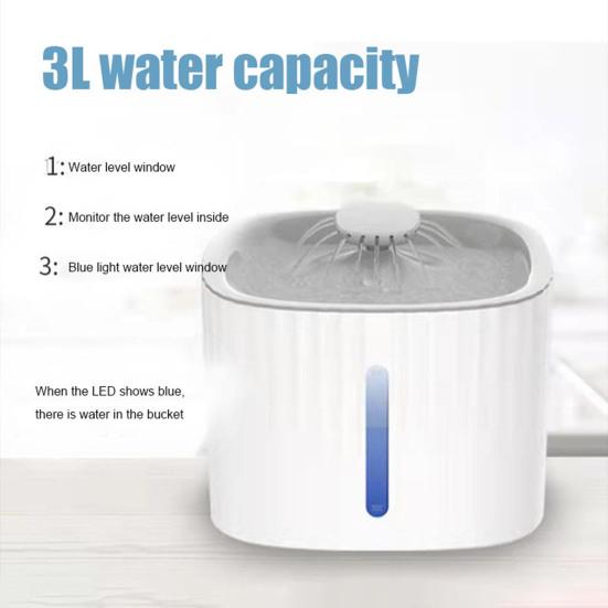 Светодиодный ночник с подсветкой: Повысьте удовольствие от питья для вашего питомца с помощью встроенного светодиодного ночника, который не только добавит нотку уюта, но и наглядно покажет уровень воды.. Красный индикатор нехватки воды гарантирует, что ваш пушистый друг никогда не испытает жажды, даже в темноте.